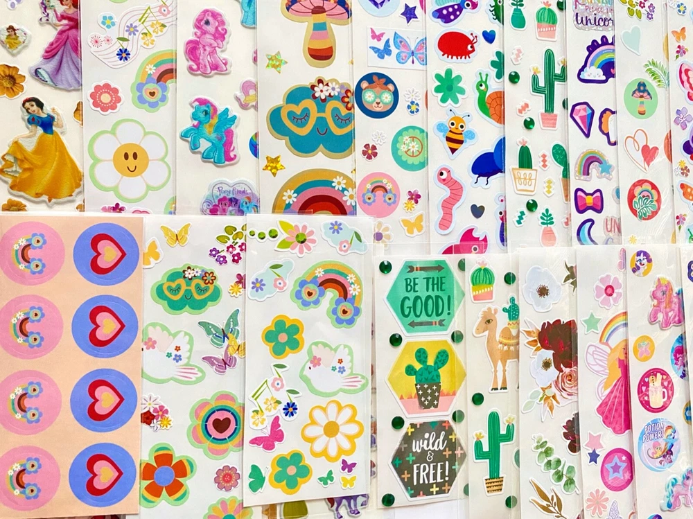 Special Mixed Sticker Lot | The Ultimate Kit | Qty. 300+ Stickers | High Quality Only! Fun Assortment of Puffy, Scrapbook, Glitter, Pop Up, Cartoons, Bubble, Laser, Foil, Metallic Stickers and many more styles | themes! I have included a large variety of pictures of the assortment available. The pictures give you an idea of what you will be receiving. Please Note: You will not receive everything pictured. Please contact me with any special requests. This HUGE Variety of fun designs stickers can be used in parties, classroom, school and home, good for reward for students, potty training, adding inside a birthday card, game activities, entertaining toddlers, etc. Perfect Gifts for Kids & all Occasions: Can be given as a gift for kids, girls, boys, toddlers, teens, students, friends, and classmates, they will love it!