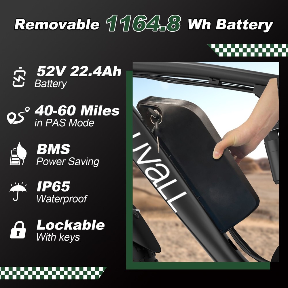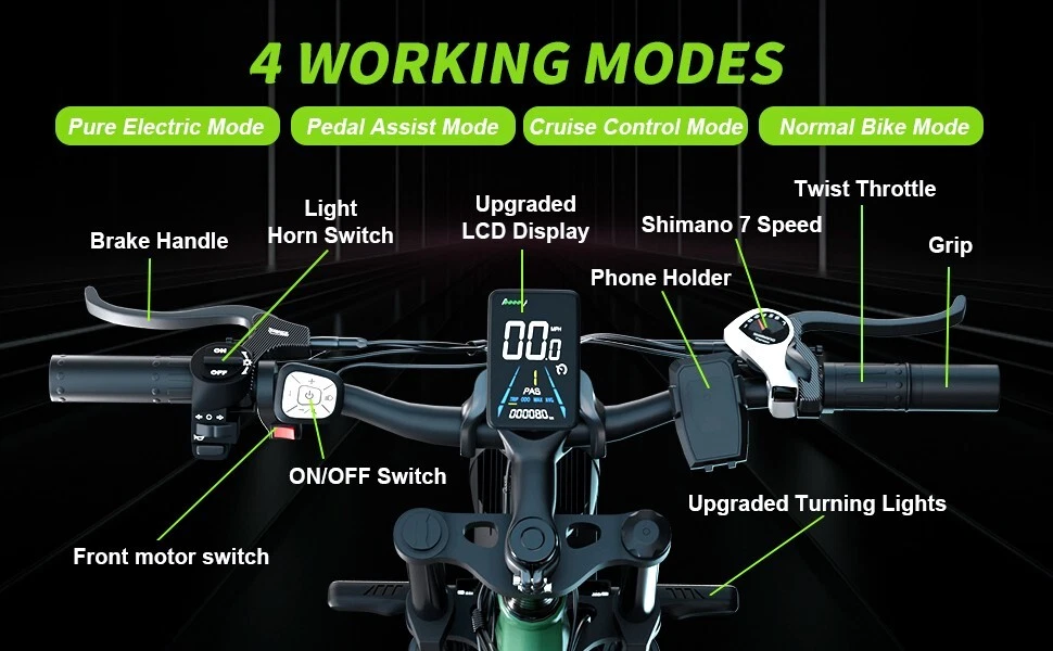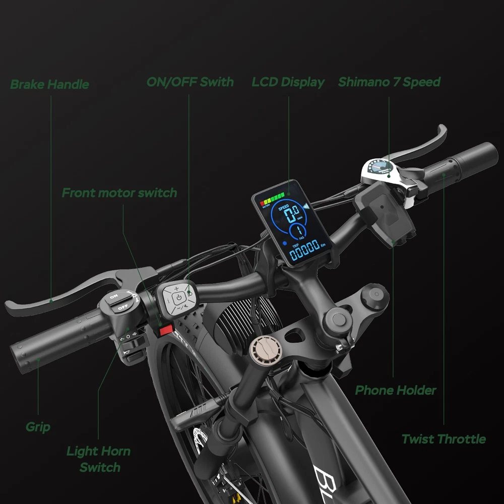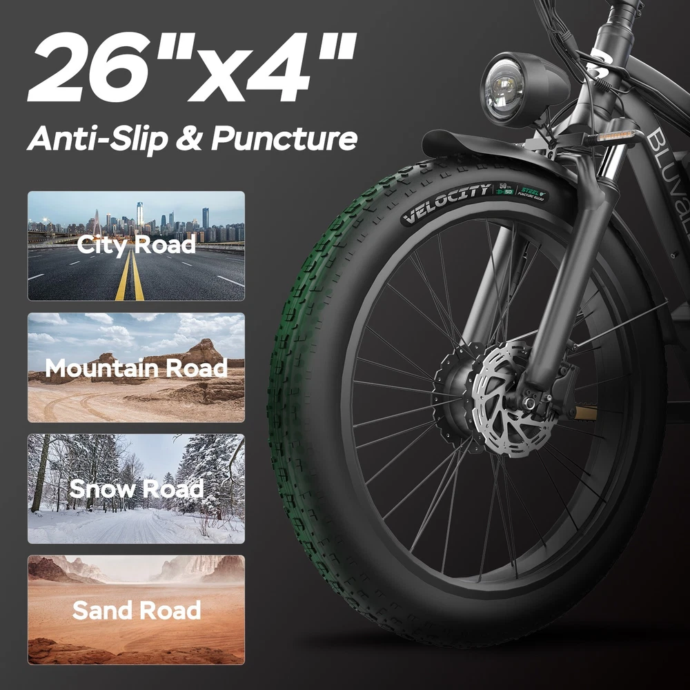 Specification: V1 Double Engine Electric Bicycles,(Front 1000W, Rear 1000W Brushless Motor), 52V 22.4AH Battery Waterproof Wiring, 7 Speed MTB 26" 1. Wheel size: 26" 2. Frame: 18"" Aluminum Alloy 6061 3. Handlebar Sets: Aluminum Alloy with Matte, H31.8*680,S31.8*90, SP31.6*350mm 4. Fork: Dual Crown Suspension, Rear shock 1000 pounds 5. Shifting Lever: SHIMANOTX50-7,SHIMANOTZ30 & TY500 7PS 6. Crank sets: Aluminum alloy, Square hole,48T 7. Brake: Brand Logan Hydraulic oil Disc brake 8. Tire: CHAOYANG 26"" * 4.0 9. Riding Mode: Electric Power Assist (5shifts); Pure Electric (5shifts); Pure Human riding 7 Speed, Cruise function 10. Travel Range: Electric Power Assist 40~60 Miles 11. Max Speed: 35MPH,Battery Charging Time: 5~8 hours 12. Monitor: EB350 Middle LCD digital display The item is UL 2849 certified with a link to the UL Product iQ < https://productiq.ulprospector.com/en > Contact US: Working Time: Monday - Friday (GMT+8 9:00am - 6:00pm) Saturday & Sunday - Closed ALL Messages will be replied to within 24-48 hours. If you run into any issues and need help, please send the following to us: 1. Photos of the frame number and motor code 2. A detailed description of the problem. 3. Related pictures and Video(s) showing the problem if available. Regarding the video submission, since there are limitations on eBay for sending videos, Plese going to our Bluvall official website and contact our customer service, Our technical team will quickly figure out the problem and offer a solution.