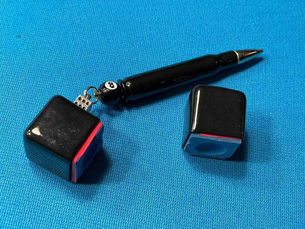NEW Billiard Pool 30-06 Rifle Powder Coated Case & Nickel Plated Bullet, Black Pocket Chalker and it has a 8-Ball design. Plus, you get a matching 8-Ball table Chalker. Black Cup and Blue Masters Chalk. The powder coating is very durable with a high shine and slick surface. New Introducing our new 8-Ball Design Billiard Products Made in the USA This Billiard Pool Tool Works Great ! First Class Mail on this item within the USA Order Today ! These are made in the USA by Chalk Box, Inc. Check out my eBay Store for more Unique Items. PLEASE SEE PICTURES ...........