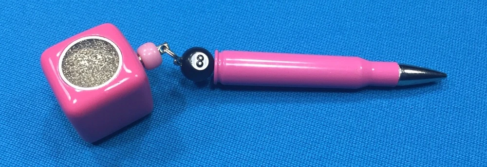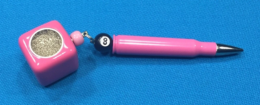 NEW Billiard Pool 30-06 Rifle Powder Coated Case & Nickel Plated Bullet PINK Pocket Chalker & Scuffer with 8-Ball Bead These are Great ! The powder coating is very durable with a high shine and slick surface. New Introducing our new Scuffer-Chalker "Pink Bullet Pocket Chalker" Made in the USA High Quality Tungsten Carbide Grit Scuffer with a Precision Nickel Radius. Shape your pool cue tip with a perfect nickel raduis everytime, then just Chalk-it-Up. This Billiard Pool Tool Works Great ! Included : Blue Master's Chalk. Chalk can be replaced very easy. If you want to keep this in your pocket, just turn the chalk around. Then you will always have your scuffer when you need it and a good peice if chalk when your ready to play. Check out My Other Items in eBay My Store This Scuffer will not wear out ! Vinyl Chalker Cup with a Precision Nickel Radius Tungsten Carbide Grit Scuffer with blue Master's Chalk included. You are bidding on ONE Pink Scuffer Powder Coated Pocket Chalker with a 8-ball bead . Please look at our other store items for more styles and colors. FREE SHIPPING - First Class Mail on this item within the USA Order Today ! These are made in the USA by Chalk Box, Inc. Please feel free to ask questions, I will do my best to answer what I can. Check out my eBay Store for more Unique Items. PLEASE SEE PICTURES ........... Powered by eBay Turbo Lister The free listing tool. List your items fast and easy and manage your active items.