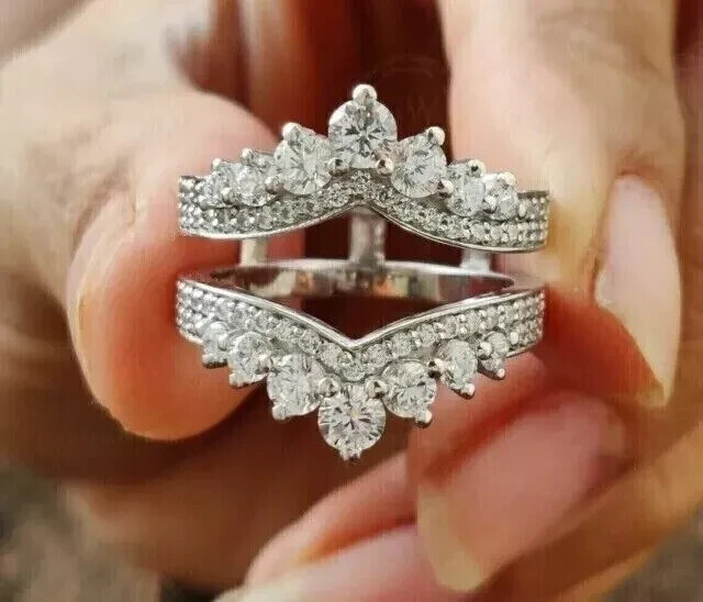 This 3.00ct round cut lab created diamond enhancer wedding wrap ring is a stunning piece of jewelry ideal for various occasions such as anniversaries, birthdays, and weddings. The ring is 14K white gold plated with a secondary diamond stone and features a prong setting style. It is personalized, handmade, and crafted with sterling silver materials, ensuring a high-quality and unique accessory for any woman. The ring also includes engraving details and has a total carat weight of 3.00ct with a clarity grade of VVS1, making it a luxurious and beautiful addition to any jewelry collection.