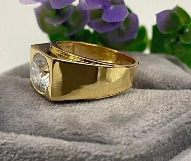 3.00Ct Round Cut Moissanite Men's Engagement Wedding Ring 14K Yellow Gold Plated Customization: Want to add your personal touch to this piece? Contact us and we will create one just for you. Most customization requests include: 1) Ring Resizing 2) Redesign 3) Metal Change (Silver/10K Gold / 14K Gold /18K Gold) 4) Metal Color Change (White/Yellow/Rose/Black) 5) Color Stones (White Topaz, Pink Sapphire, etc) 6) Engraving (Name or any message - no of characters subject to size of jewelry) 7) Anything under the sun that catches your fancy, we will give it a try :) Payment: We accept payment via PayPal only. You can also pay using your credit card, via paypal, by using paypal as a guest. Payment is required within 3 days of the sale of an item. Shipping: International shipments are usually delivered within 2 to 6 weeks, depending on the time taken to clear customs. We are not responsible for any delays due to customs. Please note that all countries charge a duty on imported goods. A customs clearing charge is also imposed in many countries. We are not responsible for the amount of duty or any other related charges. Terms & Sale: We want to ensure that you are completely satisfied with your purchase. If not, then please let us know before leaving any feedback and allow us to work with you to completely resolve any issues that you might be facing. You can return the item for a full refund LESS shipping, within 14 days of item(s) receipt date. There is no restocking fee. 100% Satisfaction Guaranteed. All returns must reach us within 14 days after the item was delivered to you the item must be in the original condition and with the original tags attached. Contact Us: You can contact us by clicking on 'ask seller a question'