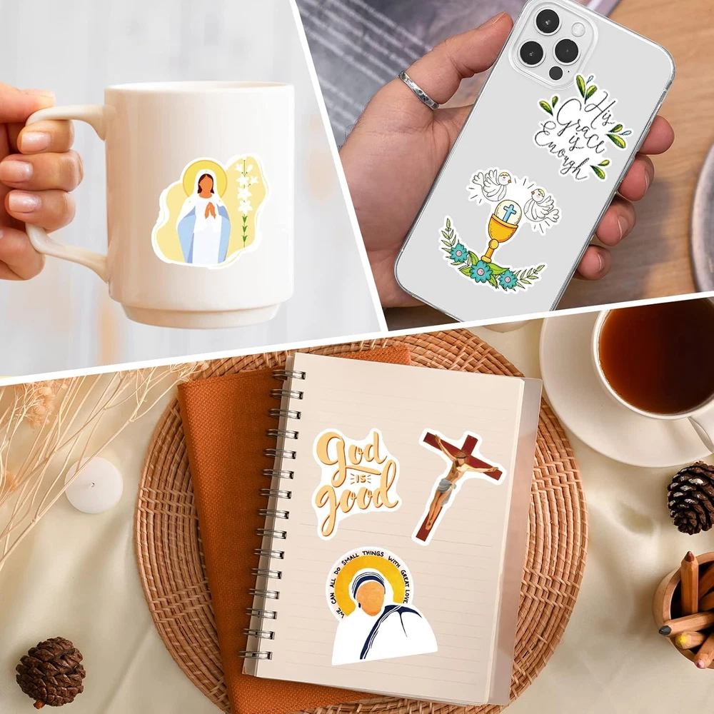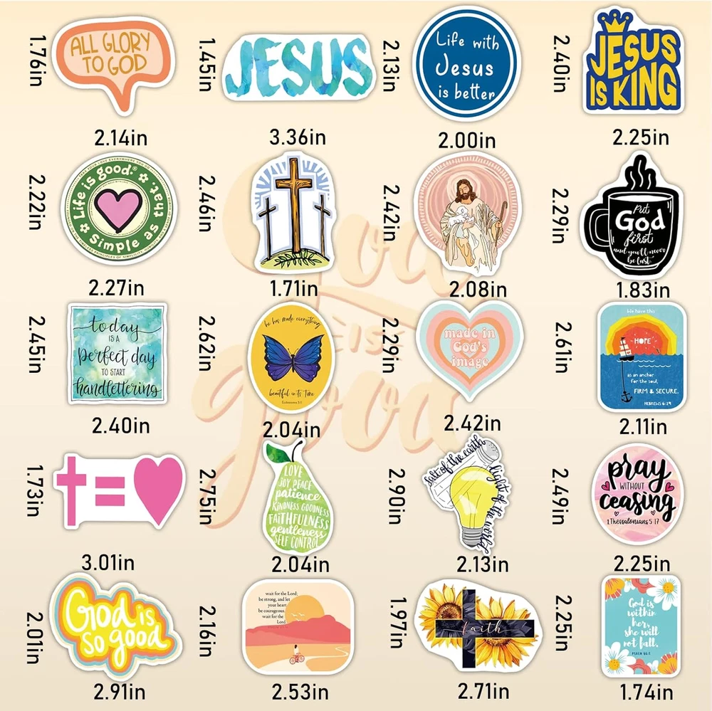 Style: Religious Special Feature: Waterproof Item Form: Sheet Reusability: Single Use Age Range (Description): Adult, Teen Item Weight: 7 ounces Water Resistance Level: Waterproof Surface Recommendation Glass, Smooth Surface, Skateboard: Material Vinyl Embellishment: Glitter Product Dimensions: 8.85 x 6.69 x 0.31 inches Number of Items: 300 Number of Pieces: 300 Theme: Christian jesus stickers Shape Round: Unit Count 300.0 Count Pattern: Letter Recommended Uses For Product: Laptop, Water Bottle, Scrapbook Item model number: AS-007 Item dimensions L x W x H: 8.85 x 6.69 x 0.31 inches gtin13: 313025139137 UPC: 313025139137 Type: Does not apply Brand: Does not apply Cartoon Character: Jesus Color: Yellow, Red, Brown, Orange