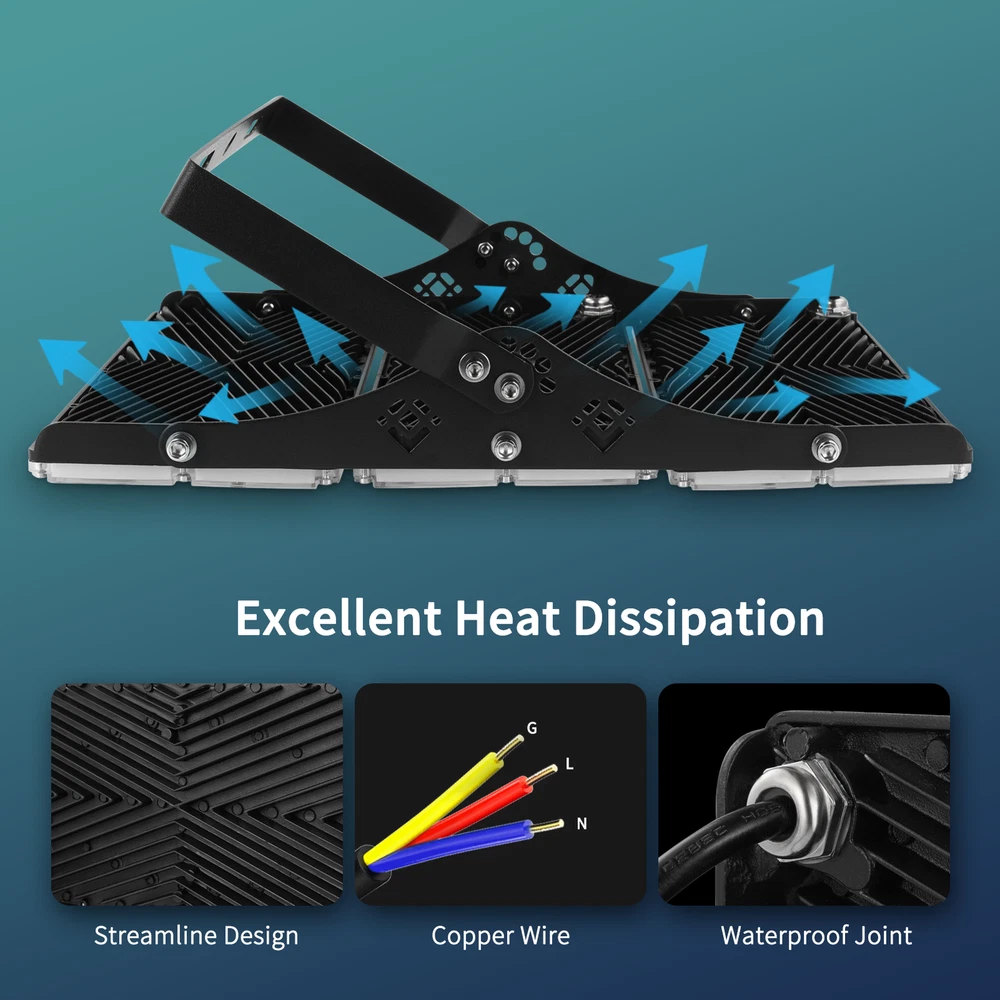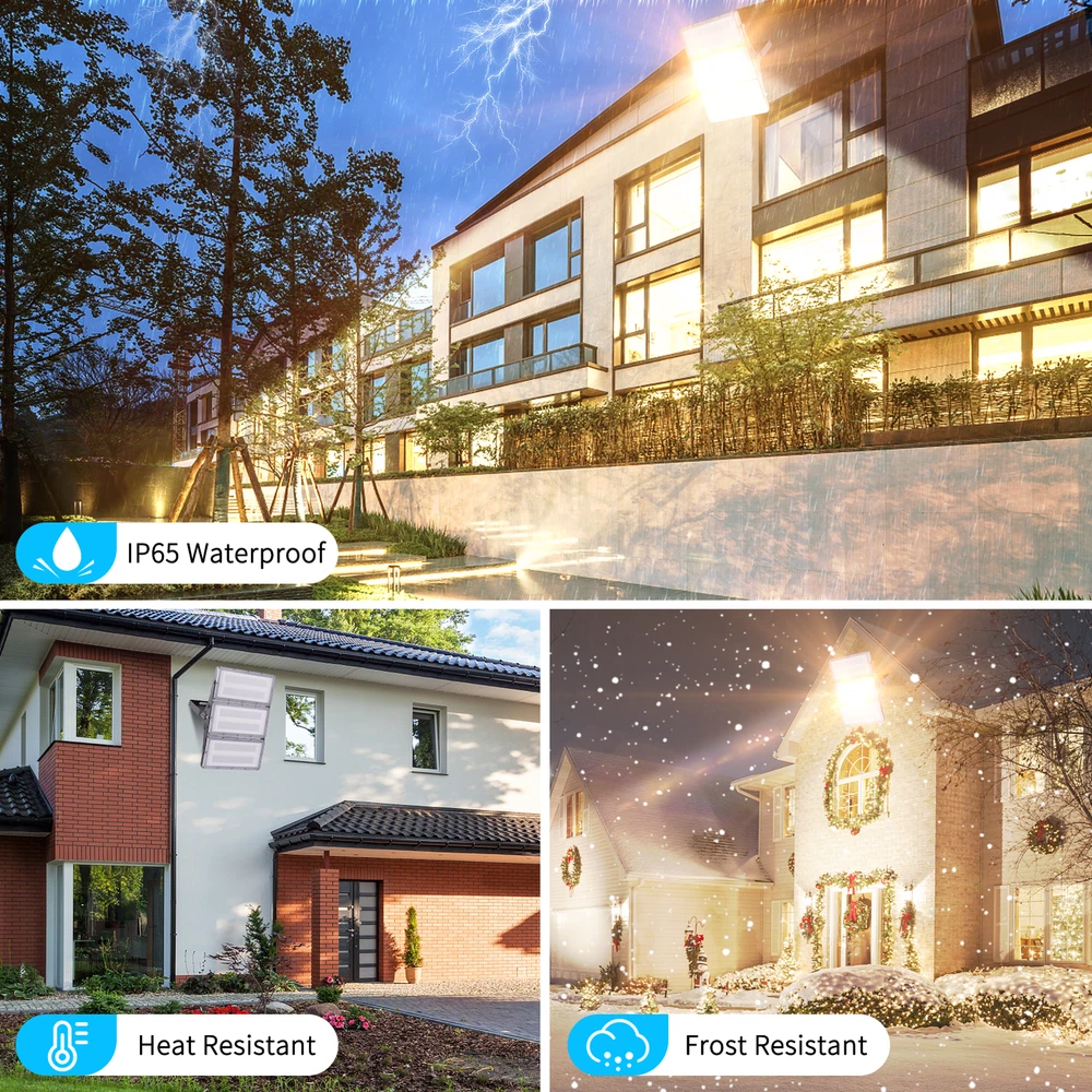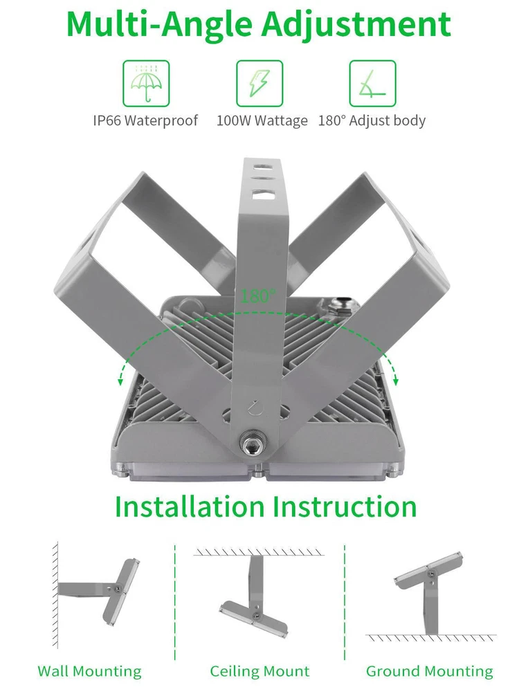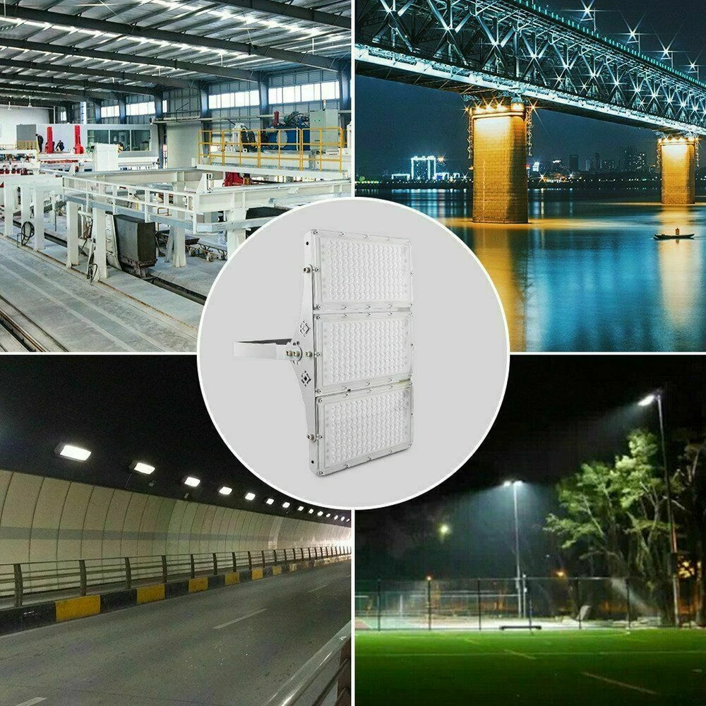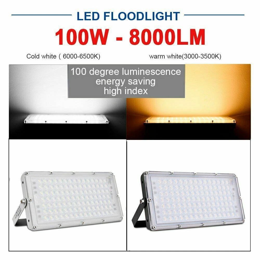 LED floodlights provide high performance, long life and energy saving in a simple, non-decorative traditional appearance fixture. Our Lighting introduces the latest solid-state LED technology to the market and uses the Helios technology we are applying for a patent, which provides a real lighting experience, both in the environment and in the appearance. LED floodlights guarantee better, cheaper and healthier lighting than traditional fluorescent lamps, and can easily be replaced by any existing lamps. Specification: Power:100W 200W 300W Input Voltage:110V Type:105pcs/210pcs/315pcs 2835 LED Type:LED Floodlight Lumens: 8000lm 16000lm 24000lm Color Temperture: Cool White( 6000-6500K) / Warm White(3000-3500K) Beam Angle:120° Material: Aluminium+PC Size (L*B*H): 100W: 249X112X25MM 200W:249X244X25MM 300W:249X366X25MM Life Span: >5,0000 S. Protection Grade:IP67 Certification: CE Approved & Rohs Compliant Energy Efficiency Class: A+ Feature: 1.Waterproof,IP67 2.Energy saving 3.Applicable to residential buildings, campuses, factories, parks, streets 4.Easy to install,Wall type, street lamp type Package: 1x LED Flood Light