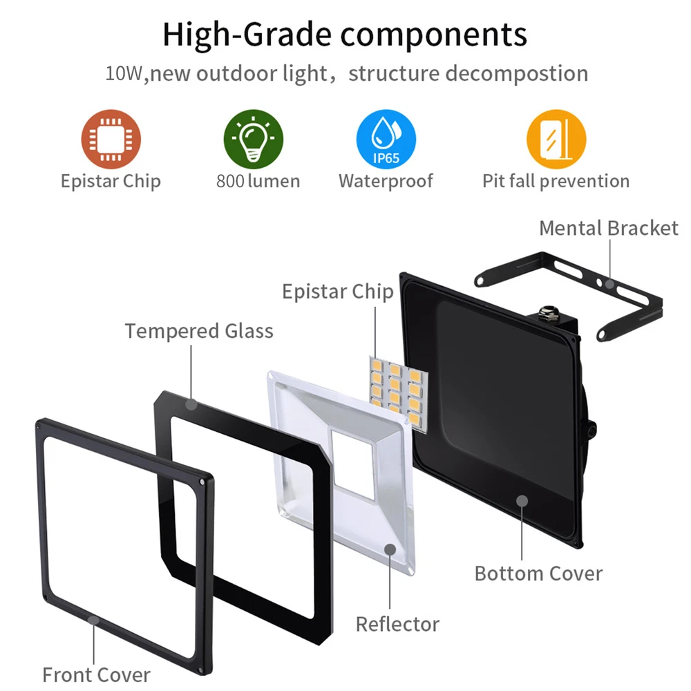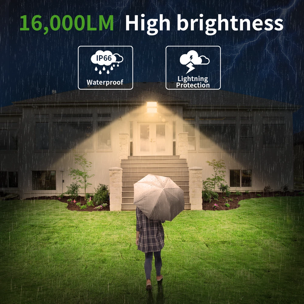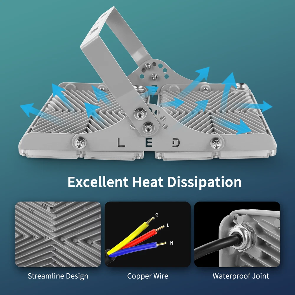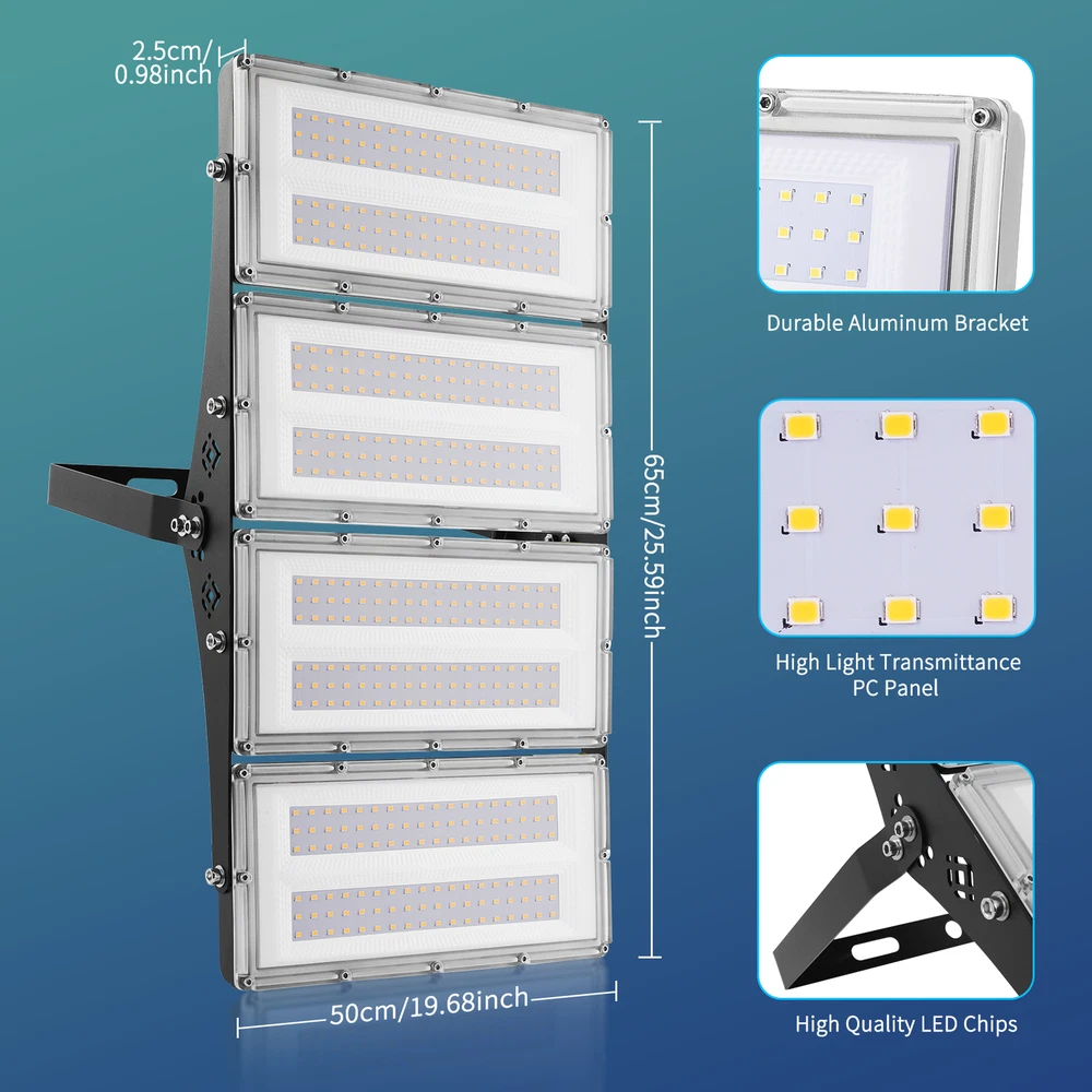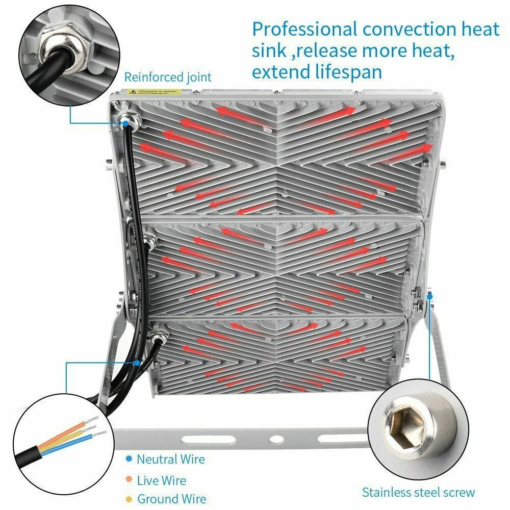 LED floodlights provide high performance, long life and energy saving in a simple, non-decorative traditional appearance fixture. Our Lighting introduces the latest solid-state LED technology to the market and uses the Helios technology we are applying for a patent, which provides a real lighting experience, both in the environment and in the appearance. LED floodlights guarantee better, cheaper and healthier lighting than traditional fluorescent lamps, and can easily be replaced by any existing lamps. Specification: Power:100W 200W 300W Input Voltage:110V Type:105pcs/210pcs/315pcs 2835 LED Type:LED Floodlight Lumens: 8000lm 16000lm 24000lm Color Temperture: Cool White( 6000-6500K) / Warm White(3000-3500K) Beam Angle:120° Material: Aluminium+PC Size (L*B*H): 100W: 249X112X25MM 200W:249X244X25MM 300W:249X366X25MM Life Span: >5,0000 S. Protection Grade:IP67 Certification: CE Approved & Rohs Compliant Energy Efficiency Class: A+ Feature: 1.Waterproof,IP67 2.Energy saving 3.Applicable to residential buildings, campuses, factories, parks, streets 4.Easy to install,Wall type, street lamp type Package: 1x LED Flood Light