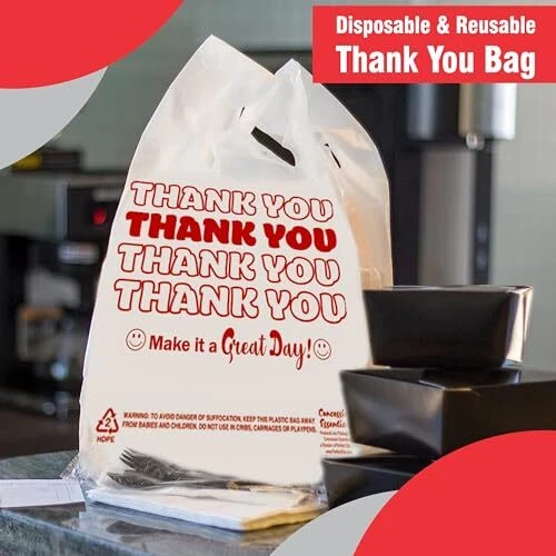 Return Policy Fast Delivery Trusted seller Thank You Bags Pack of 300ct White Product Description Our White Plastic Bags Are Printed With "Thank You" Thank You Bags Measure 11.5" X 6.25" X 21" Plastic Bags Come With Handle Design Making Them Easy To Carry Our Bags Are 0.60Mil In Thickness Which Are Thicker Than Regular Grocery Store Bags Shipping Returns Payment Shipping Shipping is FREE to all addresses other than APO/PO boxes in the lower 48 states. All our stock ships from US-based warehouses. Shipped via USPS or UPS (depending on location and package weight) Unless stated otherwise, all orders will ship within 24-72 hours of your payment being processed. Check our feedback to see the great reviews of FAST shipping we offer. Returns Seller does not accept returns Payment We currently accept payment via eBay managed payments only. Once payment is cleared, we will dispatch your shipment within 1-3 business days. Please refer to the "Shipping" tab for more information regarding shipping speed to your destination.