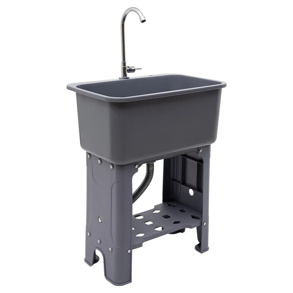 Specifications Color: Gray Material: PP Style: Modern Process: Inject Molding Assembly Required: Yes Mounting Type: Freestanding Faucet Opening: Single Hole Faucet Single Hole Diameter: About 2.6cm/1.02in Base Type: Legs Number of Sinks: 1 Load-bearing Capacity: About 50kg/110.23lbs Drain Pipe Diameter: 3cm/1.18in Volume: 48L/12.68gal Faucet Adjustable Angle: 360° Water Inlet Pipe: 60cm/23.62in Drain Pipe Length: 77cm/30.31in Faucet Height: 31cm/12.2in Leg Height: 49.5cm/19.48in Sink Inner Size: 56*32*26cm/22.05*12.6*10.24in Overall Product Size(Not Including Faucet): 60*40*76.5cm/23.62*15.75*30.12in Package Included 1*Utility Sink 1*Faucet 1*Washboard 1*Inlet Pipe 1*Drain Pipe All Accessories for Assembly Freestanding Plastic Utility Sink Laundry Tub Laundry Sink with Faucet Grey NEW Description With its 360° rotating faucet and premium PP material, this freestanding utility sink is an excellent cleaning tool. Its deeper and larger sink reduces splashing while simultaneously making better use of available space. Meanwhile, it's easy to install thanks to its straightforward design and full complement of attachments. It's ideal for laundry rooms, baths, and minimalist kitchens because of its smart design and modern appearance. Key Features Beautiful Appearance: The gray color scheme gives the product a high-end and minimalist look, which can adapt to a variety of different decorating styles and add more stylishness to your room. User-friendly Design: The 30.12 " overall height( not including the faucet ) and 10.24 " depth of the sink reduce the frequency of bending and the burden on your waist. High Stability: Thickened material, four supporting lage, stable rectangular structure, strong screw fixation, and reinforcing rib make its weight capacity up to 110.23 lbs, making the product more stable and safer to use. Build to Last: It is made of high-quality PP material and adopts an injection molding process, which makes the product wear-resistant , corrosion-resistant , sturdy and durable, and not easy to rust. Large Cleaning Space: The large inner size of the sink( 22.05*12.6*10.24in ches) allows you to clean large amounts of clothes and wash pet cats and dogs inside. Quick Drainage: The large-diameter drainage outlet(1.18inches), porous design, and long drain pipe(max. up to 30.31 inches) allow for faster and better water drainage without clogging. Complete Set: This complete sink kit includes a sink, a faucet, a drain pipe, a water inlet hose, a washboard, and a complete line of accessories, so you don't have to buy them separately, making it more economical and convenient. Easy to Install: Its simple structure, standard threaded connector, and complete installation accessories allow you to easily complete the installation in a short time. Effortless Cleaning: The smooth surface provided by high-quality materials and craftsmanship, and simple structure allow you to easily clean the dust with water and a soft towel! Details Washboard: The washboard with a soap slot has a tightly toothed surface pattern for better stain removal. Rounded Corner: The four corners of the sink are machined to be rounded for better protection from collisions. Anti-slip Feet: The wider non-slip feet increase the contact area with the ground and effectively play a non-slip role, thus providing more stable support for the product. Ample Bottom Space: You can put large bottles of laundry detergent, small baskets, washbasins, and other items in the bottom space to make smart use of space. Practical Faucet : This 360° rotatable high faucet with a comfortable handle allows you to easily adjust the water flow, achieve dead-end cleaning , and provide you with enough washing space and flexibility. Application It is suitable for cleaning clothes, pets, pots and pans, fruits, vegetables, meat, etc. in restaurants, laundries, stores, utility rooms, laboratories, canteens, cafes, gardens, warehouses, bars, dessert shops, garages, and other commercial places. Specifications Color: Gray Material: PP Style: Modern Process: Inject Molding Assembly Required: Yes Mounting Type: Freestanding Faucet Opening: Single Hole Faucet Single Hole Diameter: About 2.6cm/1.02in Base Type: Legs Number of Sinks: 1 Load-bearing Capacity: About 50kg/110.23lbs Drain Pipe Diameter: 3cm/1.18in Volume: 48L/12.68gal Faucet Adjustable Angle: 360° Water Inlet Pipe: 60cm/23.62in Drain Pipe Length: 77cm/30.31in Faucet Height: 31cm/12.2in Leg Height: 49.5cm/19.48in Sink Inner Size: 56*32*26cm/22.05*12.6*10.24in Overall Product Size(Not Including Faucet): 60*40*76.5cm/23.62*15.75*30.12in Gross Weight: 6.1kg/13.45lbs Net Weight: 5.5kg/12.13lbs Package Size: 61.5*41*31.5cm/24.21*16.14*12.4in Package Included 1* Utility Sink 1*Faucet 1*Washboard 1*Inlet Pipe 1*Drain Pipe All Accessories for Assembly Notes Please allow the slight color difference caused by the shooting light and 1-3cm error due to manual measurement, and make sure you do not mind before you order. Payment Delivery details Terms of sales About us Contact us Payment We accept ebay payment 。 Fees such as import duties, taxes are not included in the item price or shipping costs. These charges are the buyer's responsibility. Delivery details Shipping: 2-9 working days to: USA Terms of sales We maintain high standards of excellence and strive for hundred percent customer satisfaction. Feedback is very important to us. We hope that you contact us immediately before you give neutral or negative feedback, so that we can address your concerns. It is impossible to address issues if we do not know about them! About us Your satis faction is our ultimate goal. We work hard to earn your trust and future business. Our certified technicians have tested each item before shipping. The unit comes with 1 year limited warranty on all manufacturing defects. a) If you receive a defective item, you may return it or ask for a discount. Please contact us within 14 days after you receive the package. b) What you retu