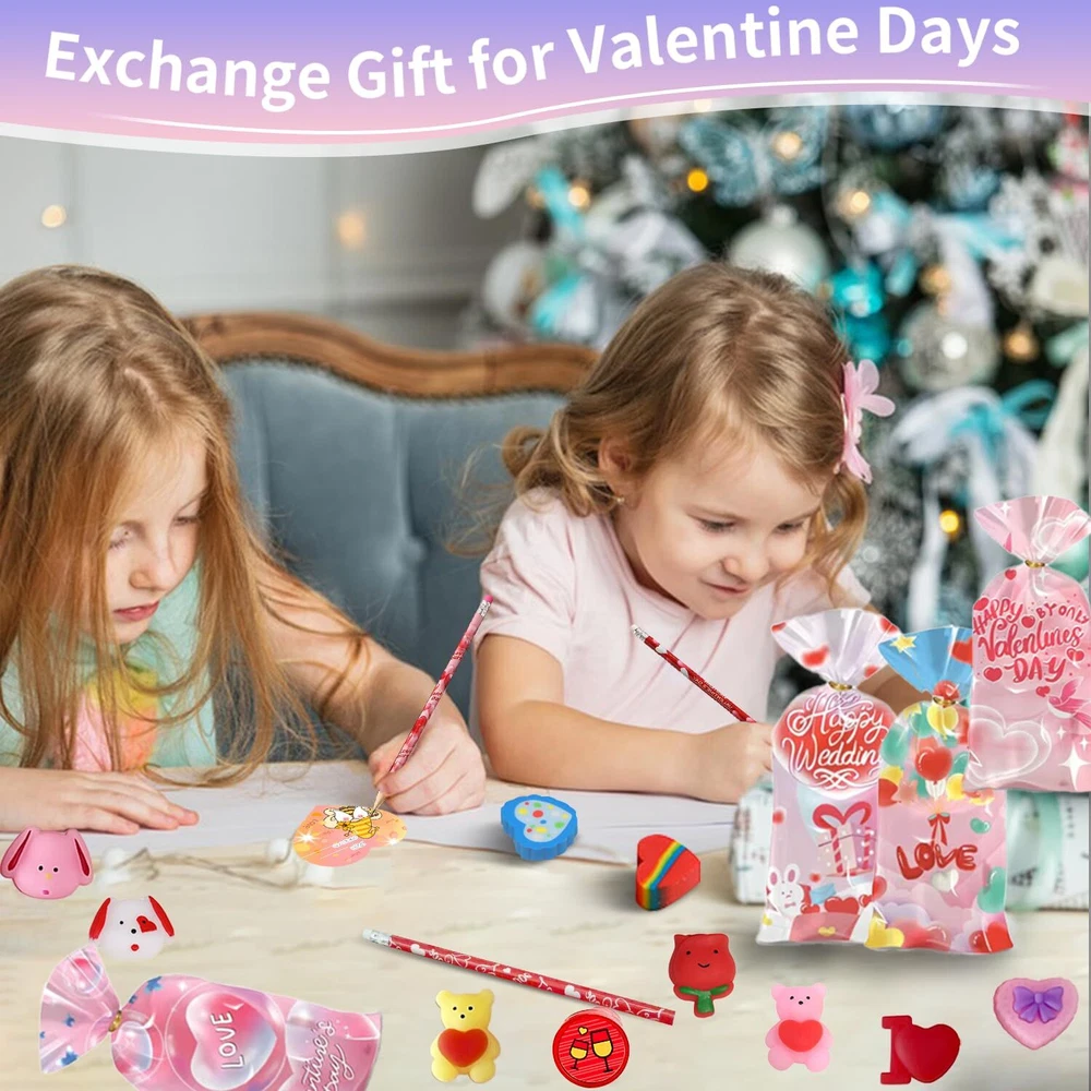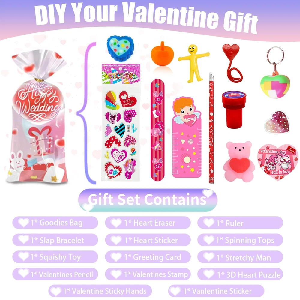 Creative Gift for Kids: Surprise your kids with this customized valentine day gifts, come in a variety of gifts: 24* pencils, 24* stamps, 24* erasers,24* Stickers, 24* slap bracelets, 24* greeting cards and 24 Goodies Bags etc. Put the little toy into the goodies bag form a gift, you will toally get 24 beautiful Valentines Day gift. Ideal Classroom Exchange Gifts: The Valentine's Day gift set is perfect for kids exchange gifts. Kids can write each other's names on our unique design gift cards to show their love and express their special friendship. It can bring the fun of sharing, help children make new friends. Party Favors for Kids: Kids can put these gifts into 24 valentine’s goodies bag, put the pencils stamps and erasers or toys into the bag. Then write a message on a greeting card and send it to their friends at the valentine party to share the fun and develop their hands-on and social skills. High Quality and Safety: The Valentines gifts for kids are are made of safe plastic, wood, non-toxic. which are durable and friendly for kids using and playing. We believe it will give your children a wonderful and unforgettable Valentines Day. Children’s Valentine’s Day Gift: Can be used as Valentine's Day party, exchange gift, children's classroom Valentine's Day gift, children's Valentine's Day card, Valentine's Day party favors, Valentine's Day pencils, Birthday gift and so on!