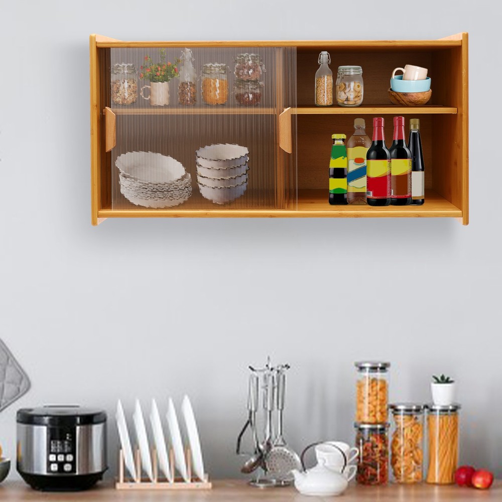 30.3" Kitchen Pantry Cabinet with Doors Wall Mounted, Countertop Cupboard 2-Tier Wall Mount Sideboard Storage Cabinet , Food Pantry Wall Cabinet, Log Color Cupboard Specification Material: Bamboo Wood, Tempered Glass Color: Log Color Style: Modern Shape: Rectangular Assembly Required: Yes Surface Treatment: Painting, Polishing Mounting Type: Wall Mount, Countertop Number of Tiers: 2 Total Load-Bearing Capacity: 50kg/110.23 lbs Adjustable Height Range: 6.5cm/2.56in Cabinet Depth: 23.5cm/9.3in Inner Height: 18.5cm/7.3in, 13.5cm/5.3in, 12cm/4.7in, 19.5cm/7.7in Inner Length: 74cm/29.13in Single Compartment Length: 36cm/14.2in Product Size: 77*28*39cm/30.3*11*15.4in Package Size: 88*44*13cm/34.65*17.32*5.12in Gross Weight: 12.5kg/27.56 lbs Net Weight: 12kg/26.46 lbs Package Included 1* Kitchen Pantry Cabinet All Accessories for Installation Details High-quality Bamboo Wood and Tempered Glass Make It Sturdy and Durable, Wear-resistant, Anti-corrosion, and Rust-resistant, Ensuring a Long Service Life The Four Compartments with Adjustable Shelving Create Ample Space for Bowls, Plates, and Spice Jars, While Removable Interior Panels Let You Reconfigure the Layout Based on Changing Needs Its Thickened Material and Strong Fixation Guarantee a Solid Structure Giving It a Maximum Load-bearing Capacity of About 110.23 Lbs to Bear Kitchen Utensils with Ease Application This kitchen pantry cabinet is suitable for kitchen, dining room, or living room, etc. for storing kitchen utensils such as dinner plates, bowls, spices, bakery items, plates, cups, and other daily items. Featuring a clear door for at-a-glance inventory and convenient access, along with two spacious tiers, it provides the storage space you need. Key Features Convenient Life: The transparent glass cabinet door design not only effectively prevents dust but also makes the items inside the cabinet clear at a glance, saving time searching for items. The smooth handle makes you open the door more quickly and conveniently. Versatile Mounting Design: Designed for both countertop placement and wall mounting, this product adapts to your space requirements. The necessary hardware is included, and the pre-drilled mounting holes combined with the straightforward screw-fastening design enable quick installation without the need for tools. Meticulously Designed: The smoothly rounded edges are meticulously crafted to prevent skin irritation and ensure comfortable handling. The cabinet door groove can improve with repeated use, providing progressively smoother opening and closing over time. Payment Delivery details Terms of sales About us Contact us Payment We accept ebay payment 。 Fees such as import duties, taxes are not included in the item price or shipping costs. These charges are the buyer's responsibility. Delivery details Shipping: 2-9 working days to: USA Terms of sales We maintain high standards of excellence and strive for hundred percent customer satisfaction. Feedback is very important to us. We hope that you contact us immediately before you give neutral or negative feedback, so that we can address your concerns. It is impossible to address issues if we do not know about them! About us Your satis faction is our ultimate goal. We work hard to earn your trust and future business. Our certified technicians have tested each item before shipping. The unit comes with 1 year limited warranty on all manufacturing defects. a) If you receive a defective item, you may return it or ask for a discount. Please contact us within 14 days after you receive the package. b) What you returned must be intact and in its original packaging as re? u. Customer is responsible for shipping costs of the returned item. c) We will cover the cost of shipping back t with the shipping rate indicated in the registration page. We will send you a new unit or refund the full payment you paid. Thank you. Contact us Business Hour Business Hour: Monday To Friday: 8:30 AM to 5:00 PM (Beijing China time) Due to time zones, our reply to your questions may not be immediately. But within above working time, we will reply your email within 24 hours. If it's non-workdays, please kindly be patient and wait till Monday. Please contact us with ebay message. Please feel free to contact us if you have any questions. Monday To Friday: 8:30 AM to 5:00 PM (Beijing China time) Due to time zones, our reply to your questions may not be immediately. But within above working time, we will reply your email within 24 hours. If it's non-workdays, please kindly be patient and wait till Monday. Please contact us with ebay message. Please feel free to contact us if you have any questions. Brand Unbranded Type Kitchen Pantry Cabinet Item Height 39cm Item Length 77cm Item Width 28cm Material Bamboo Wood, Tempered Glass Color Log Color Style Modern Shape Rectangular Assembly Required Yes Surface Treatment Painting, Polishing Mounting Wall Mount, Countertop Number of Tiers 2 Total Load-Bearing Capacity 50kg/110.23 lbs Adjustable Height Range 6.5cm/2.56in Item Depth 23.5cm/9.3in Item Width (Interior) 23.5cm/9.3in Item Height (Interior) 18.5cm/7.3in, 13.5cm/5.3in, 12cm/4.7in, 19.5cm/7.7in Item Length (Interior) 74cm/29.13in Single Compartment Length 36cm/14.2in Product Size 77*28*39cm/30.3*11*15.4in Package Size 88*44*13cm/34.65*17.32*5.12in Gross Weight 12.5kg/27.56 lbs Item Weight 12kg/26.46 lbs UPC Does not apply EAN Does not apply