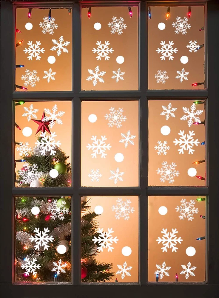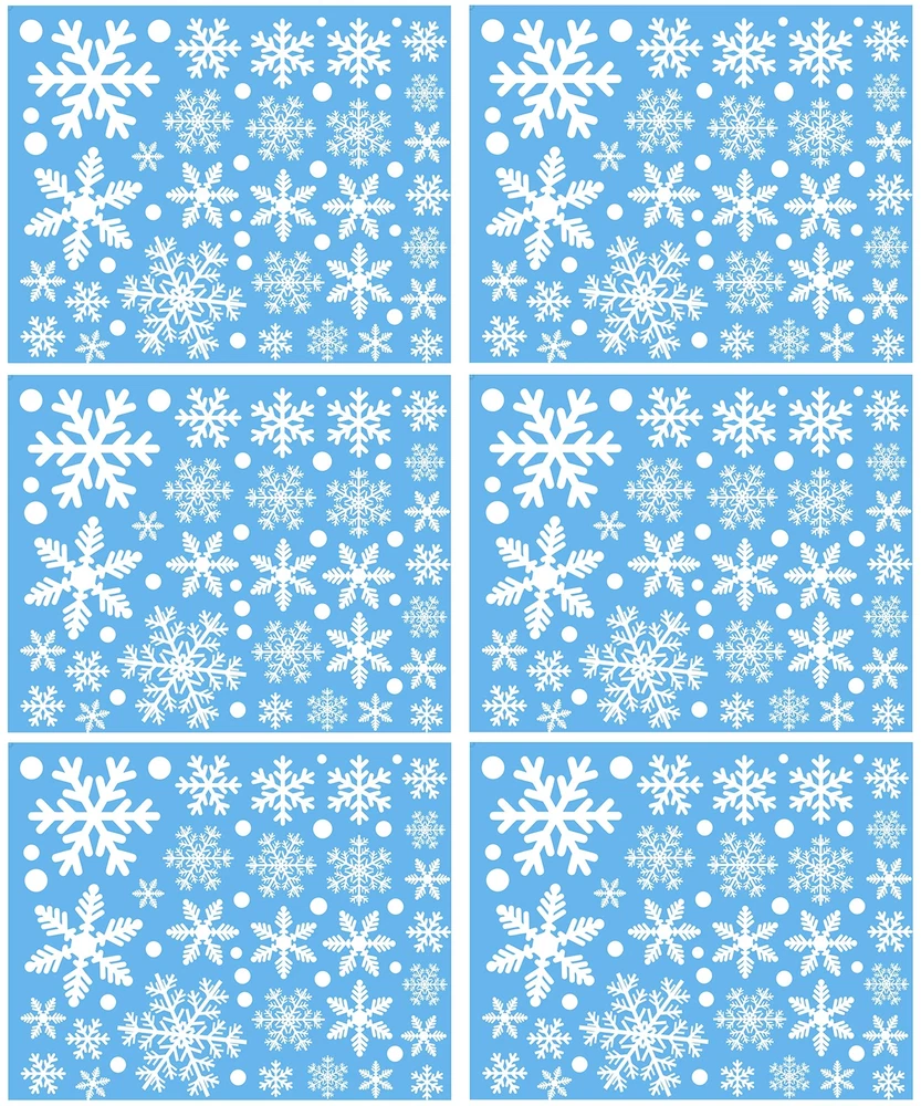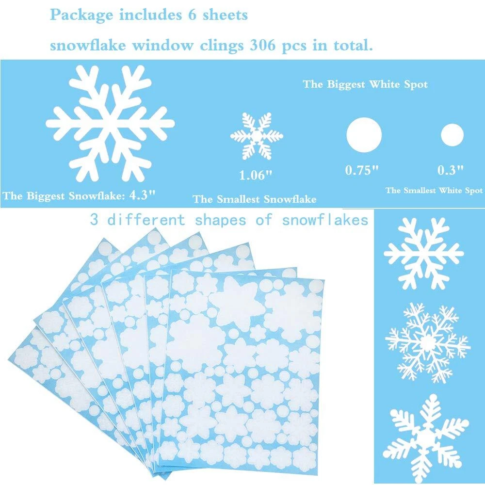 Christmas Snowflakes Decorations Kit Includes:306 pcs in total 174 Snowflakes (in 3 designs)+ 132pcs Dots . 6 sheets Christmas window snowflakes, each sheet measures 14.56inch x 11.8inch.These Christmas snowflake window decorations look really stunning and don't hesitate to buy them for your Christmas party decorations, winter wonderland party supplies. Material: Christmas window clings are made of premium removable PVC material, no glue, eco-friendly and no smell, waterproof, stick to the window easily and peel off without residue, will not hurt your window. These Snowflake window clings decals ornaments is a perfect choice to decorate your window, glass door and winter wonderland party. Great Ideas for Christmas winter wonderland decorations:exquisite Christmas clings for windows add a festive touch to Christmas decorations. These Christmas window stickers is truly a great decoration for any theme Christmas decorations, holiday party supplies. Bring the great fun to your Christmas party. How to use the window clings: 1: Use the clean cloth wipe the dust 2: Use water pot pray some water on the window in order to stick well 3: Use the card scrape off the extra air bubbles. Application for Any smooth surface: these snowflake window sticker works on any smooth surface, such as tile, glass, smooth wall, sliding glass door, shop window and so on. Put the window clings decoration on the smooth window and take you into the wonderland. Reusable: They're reusable so you can store them for use each year! Just save the backing they came on and store them flat and in a cool place. If any question, please contact with us, we will response you within 24-hours, and give you the best service.