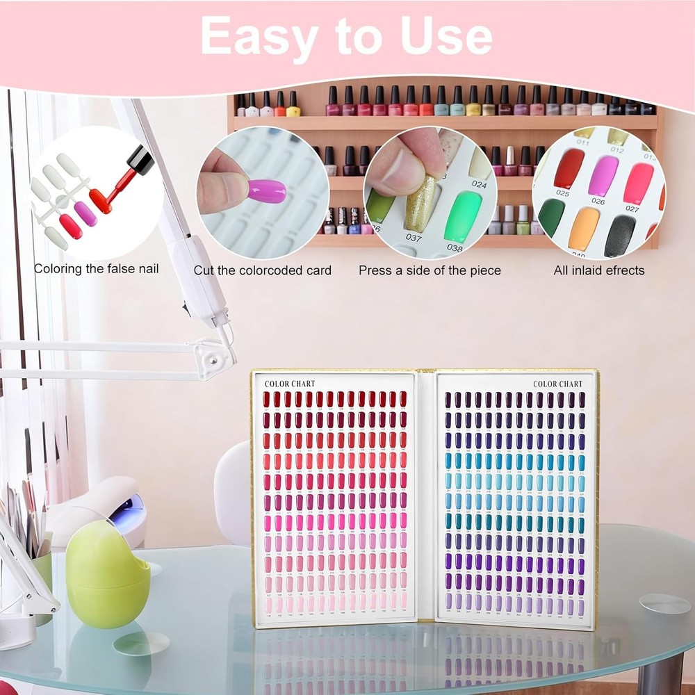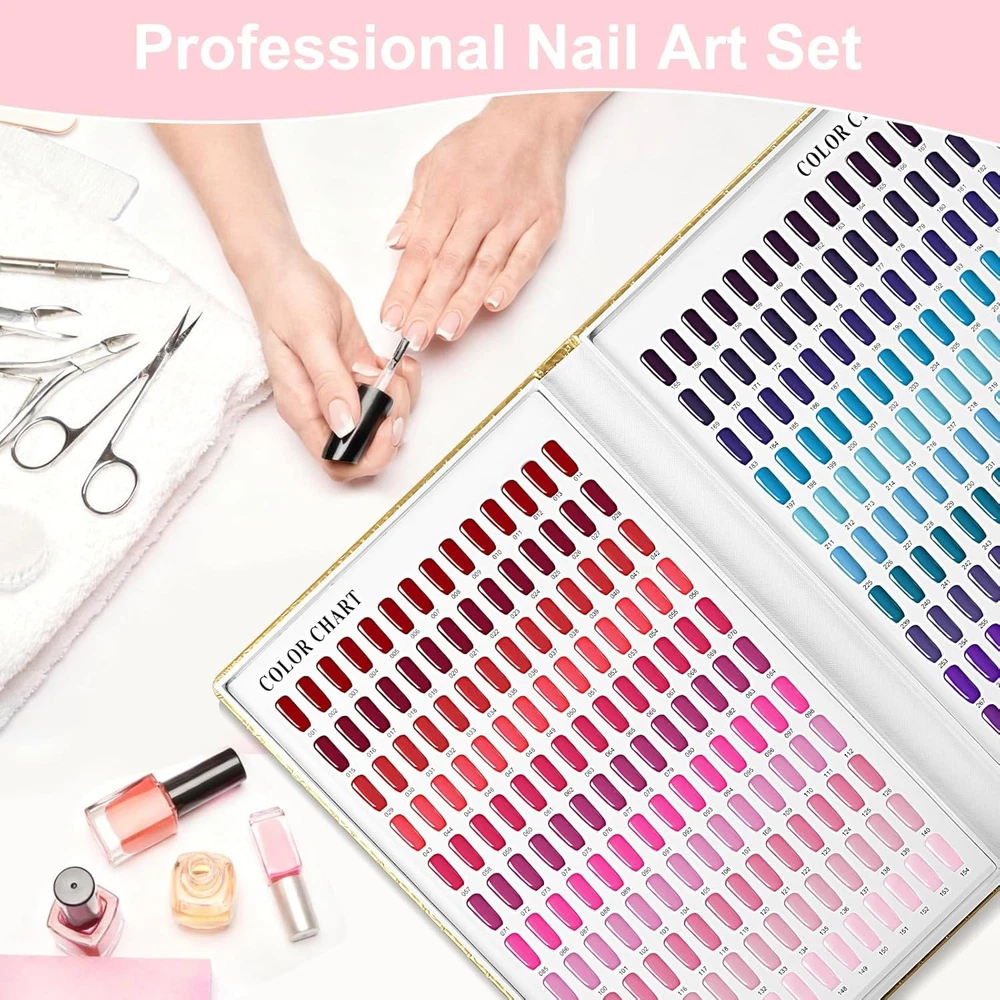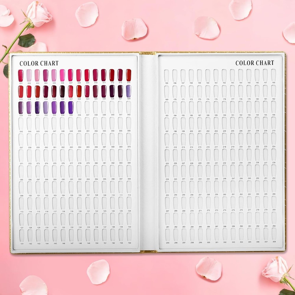 308 Colors Nail Swatches Book with 360 Tips Professional 308 Gold
