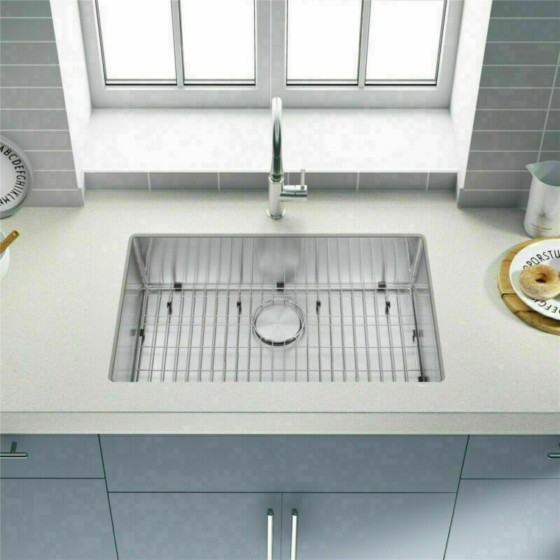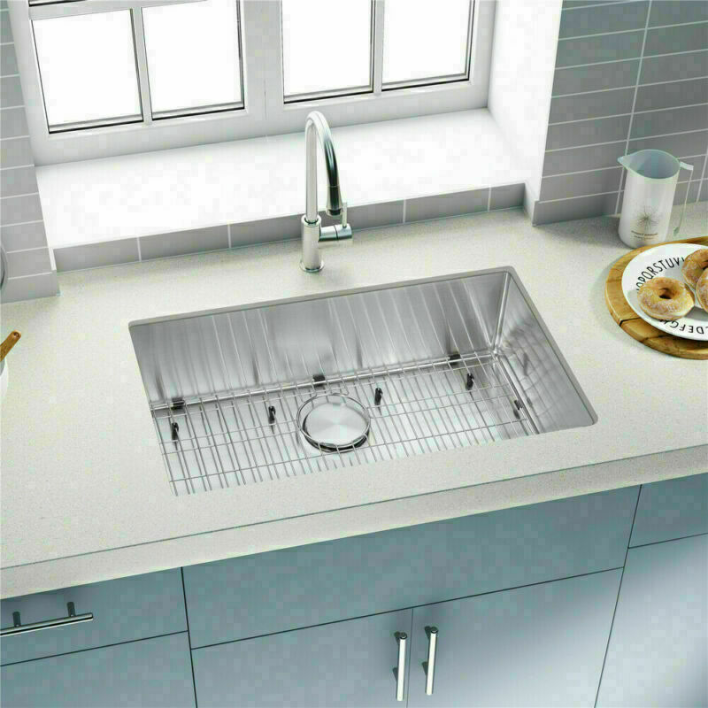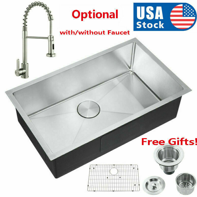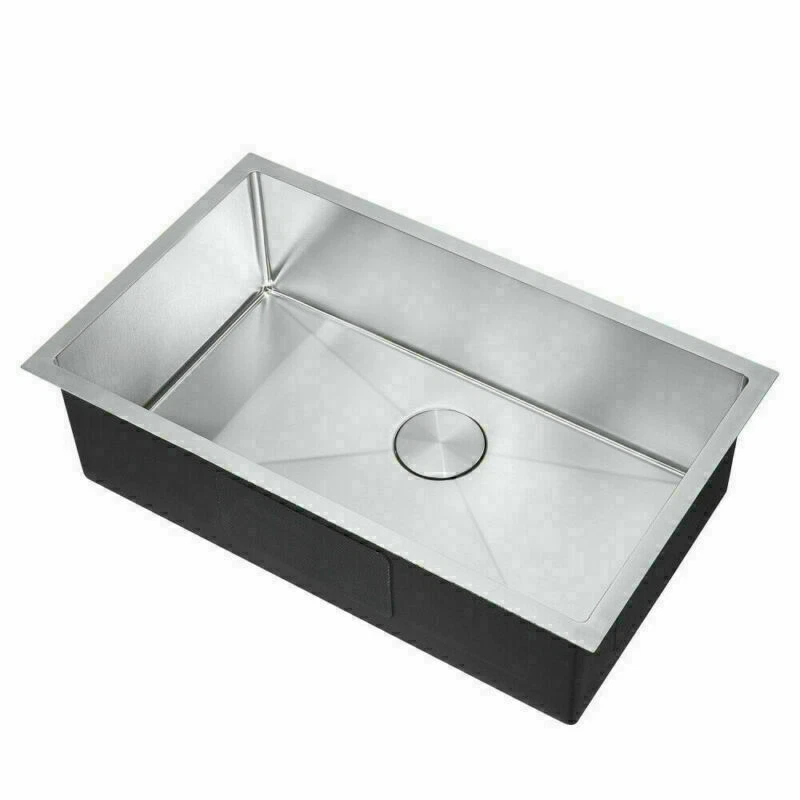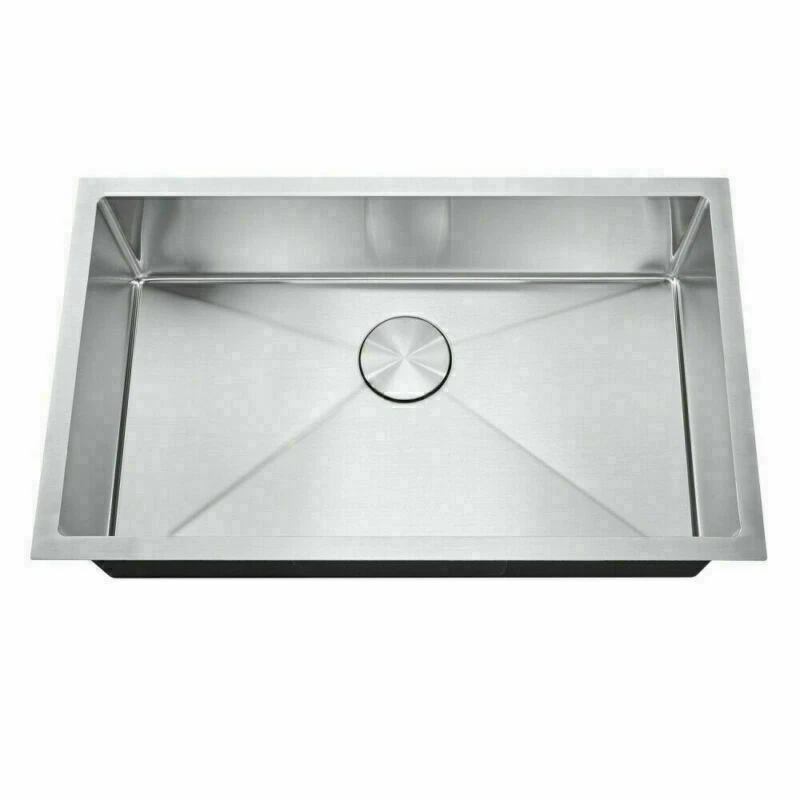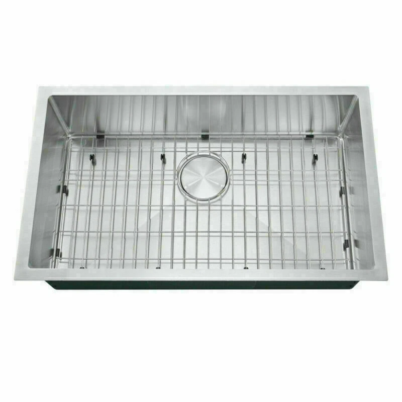 Description MPN HM301809R10-FAUCET Product Type General Item Product Name Easygo 304 Premium Stainless Steel Single Bowl Undermount 30'' x 18'' x 9'' Handmade Kitchen Sink Combo Package Size 33.00 * 19.67 * 11.00 inches 28.89lbs Features: Handmade Kitchen Sink Combo With Faucet package together Premium 304 grade stainless steel with excellent corrosion and rust-resistant 18 Gauge stainless steel thickness 10mm radius corner for easy cleaning and modern look Commercial grade brushed finish for easy to clean and long-lasting Heavy duty sound guard undercoating and thick rubber padding to minimize noise and reduce condensation Slanted bottom with elegant drain grooves for easy water draining USA standard 3.5'' drain opening will fit any garbage disposal unit Drain placement – Rear drain placement ensures dishes don't settle on the drain Stainless steel bottom rinse grid can protect the sink from scratches and acts as a drying rack for pots and pans Stainless steel basket strainer drain that traps goods waste and can be easily emptied into the trash Stainless steel decorative drain cover that adds to the visual beauty .It covers the drain while allowing water and waste to flow through under it . Product Weights & Dimensions 30 x 18 x 9 inch 17 pounds Accessories /Stainless Steel Faucet ( According to your choice ) Strainer and decorative drain cover Bottom rinse grid Cut-out template paper Installation mounting brackets hardware Package Package: Foam corner guard+7 layers stronger carton