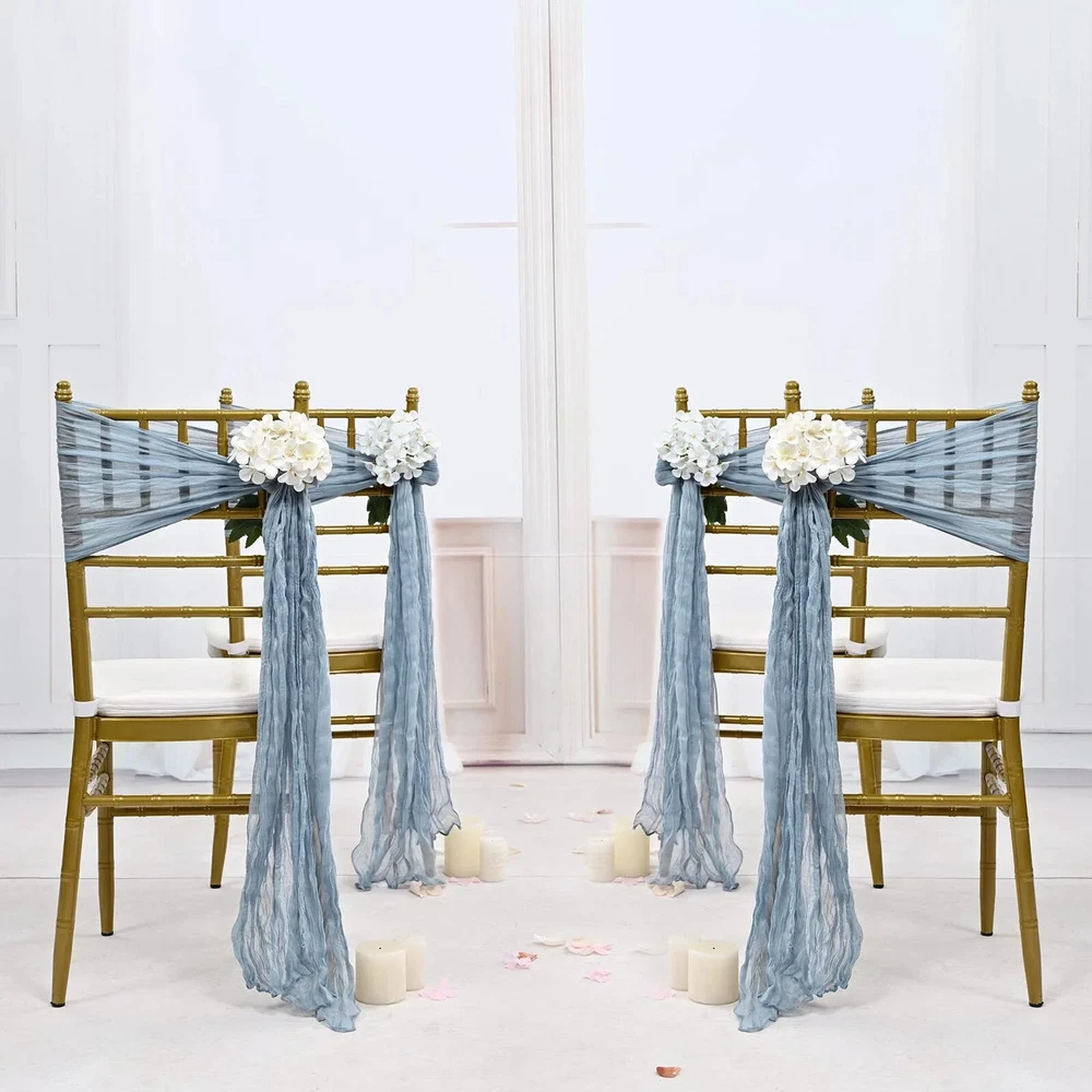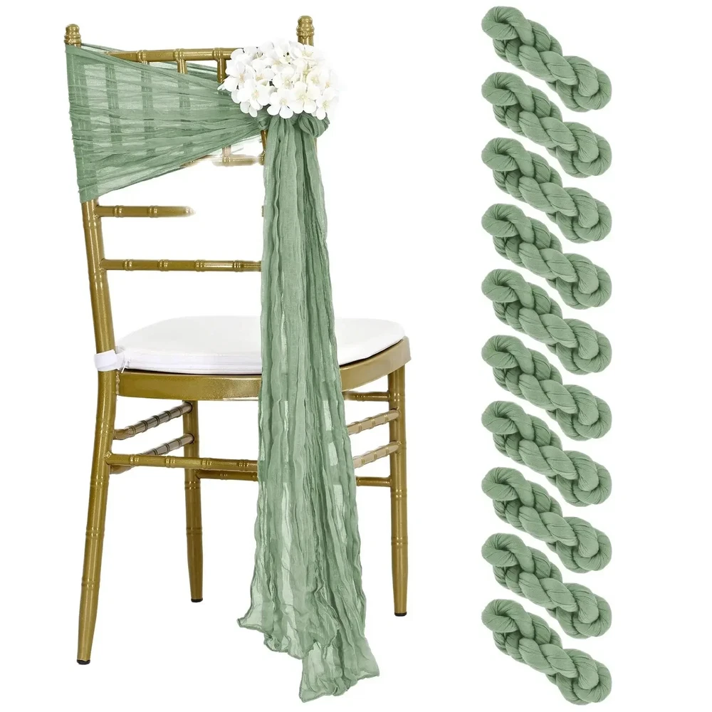 Package includes: You will receive 30 pack Sage Green cheesecloth chair sashes. Flowers are not included in the package. Each piece measures Length 275cm/108inch, Width 40cm/15inch. High quality healthy fabrics to decorate your dining environment. Cleaning and care: Chair sashes are durable and easy to care for. It can be hand washed and machine washed, but the water temperature should not be too high, it is best to wash in cold water. Bleaching will affect the texture of the chair sashes, so bleaching is not recommended. Do not expose to the sun after washing. Please keep away