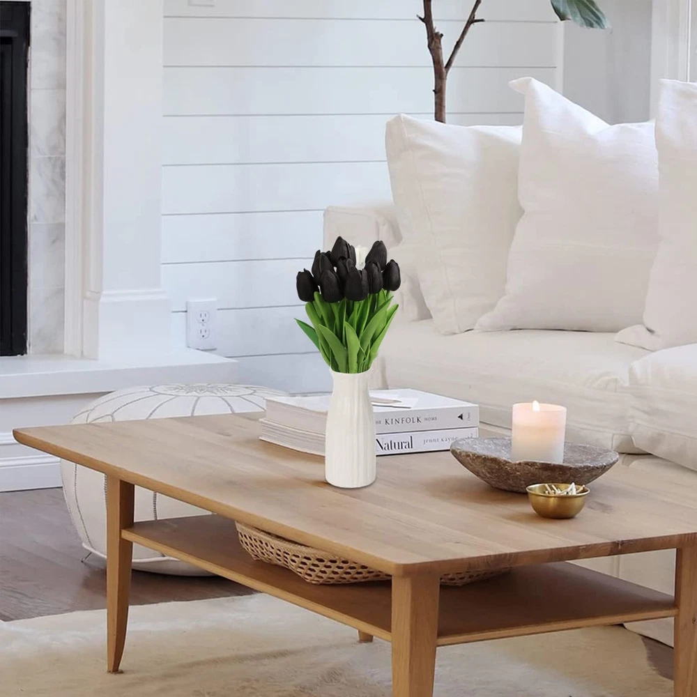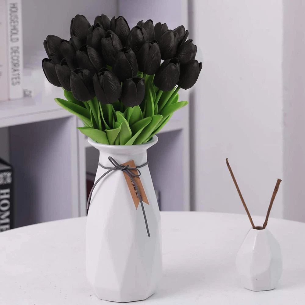 30PCS Black Artificial Flowers, Real Touch Fake Tulips, Black Tulip Flowers f...