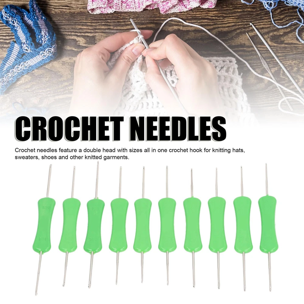 1. DOUBLE SIDED DESIGN: Crochet needles feature a double head with sizes all in one crochet hook for knitting hats, sweaters, shoes and other knitted garments. 2. ELECTROPLATING PROCESS: Double sided crochet hook is plated for a slippy, burr finish, craftsmanship and convenience. 3. ERGONOMIC DESIGN: Double end crochet needles are ergonomically designed to minimize hand stress, making them a versatile tool for crochet enthusiasts. 4. EASY TO USE: Each hook is printed with a number so you can easily find what you need, allowing you to complete complex projects with ease. 5. GREAT GIFT: Double sided crochet needles can be used in most scenarios and make a great present for a mom, wife or girlfriend who loves to knit. Specification: Item Type: Double Ended Crochet Hooks Material: Plastic, Galvanized Iron Specifications: 30 Pieces Usage: Home Use Applicable Range: Most Scenes Size: Approx. 15.8 x 1.7cm / 6.2 x 0.7in packing list: 30 x Double Ended Crochet Hooks Note: Please allow some error due to manual measurement. [DOUBLE SIDED DESIGN]: Features a dual head design with multiple sizes in one crochet hook, ideal for various knitting projects like hats, sweaters, and shoes. [ELECTROPLATING PROCESS]: Plated for a , of burrs, showcasing craftsmanship and providing convenience during use. [ERGONOMIC DESIGN]: Designed to reduce hand stress, these crochet needles are for crochet enthusiasts looking for comfort and versatility. [EASY TO USE]: Each hook is labeled with a number for easy identification, allowing for effortless completion of intricate projects with precision. [GREAT GIFT]: Suitable for various knitting scenarios, making it a thoughtful and practical present for mothers, wives, or girlfriends who enjoy knitting.