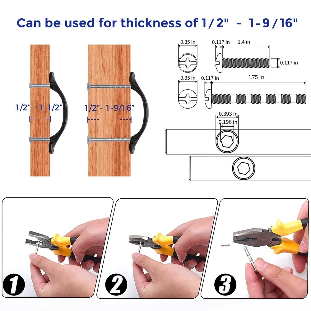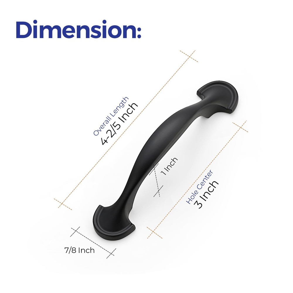 eBay Product Listing Welcome to Your Favorite My Store Your satisfaction is our top priority – Shop confidently 30 Pack Solid 3 Inch Rounded Foot Arch Kitchen Cabinet Handles Matte Black Curved Pulls Black Drawer Pulls Kitchen Handles for Cabinets Hardware Drawer Item Gallery Item Description 100-Day Evaluation: We believe you'll value the handles. Experience their craftsmanship at your convenience, and if they don't meet your needs, we are here to assist If you're replacing your handle, measure and ensure the center to center hole spacing of the current handle is 3 Inches(76mm) Installing new cabinet handles, drill two holes with center to center spacing of 3 Inches(76mm) Sturdy & STRONG: 30 rounded foot arch pulls made of Zinc Alloy finished with classic matte black coordinates well with other appliances and accessoriess Simple look: The matte black handles have a wide appeal across a range of kitchen cabinet doors and drawers. The black handles have a clean and timeless look that works with farmhouse, vintage, traditional and transitional styles MEASUREMENT: Screw-hole center:3 Inch(76mm); Overall Length: 4-2/5 inch(112mm); Width: 7/8 inch(22mm); Projection: 1 inch(25mm) Special Features For over a decade, has always been committed to bringing the best home revitalization experience to our users for we deeply understand what does a beautiful and fashionable house mean to a whole family. The Euro-style cabinet handle finished with Brushed Nickel provides an elegant modern flavor to your cabinet and even your whole room. Fashionable and durable design coordinates with many décor themes, and are proven to be functional and elegant through years of use. Stainless steel handles can be used anywhere in the house to revitalize your kitchen or bathroom and provide any furniture updates. 25 handles in a coordinating design and finish with two mounting holes can also be applied in cabinet drawers. Decorative Cabinet Hardware Revitalization with cabinet pulls is perfect for accenting the décor and style of existing cabinets or furniture. Decoration with our cabinet handles provide you with great convenience to change look and feel of an entire room. Stainless Steel Cabinet Pulls Adds a Distinguished Look The cabinet bar pulls elaborately crafted and designed to beautify your house with their simplicity. Tough Durable Design The lightweight but durable cabinet pull is built to withstand over years of wear and tear. They have a nice weight to them and come individually wrapped to protect against any scratches. Sleek Appearance Quick and easy install Screws included Our Guarantee To You We offer fast shipping, free delivery, and 100% customer satisfaction guarantee. Not satisfied? Return your item for free within 30 days. 30-Day Free Returns Shipping Details Items will be sent to your eBay address. Please verify before purchasing. Typical delivery within 3-7 business days. Professional shipping services used for all orders. We ship to the continental US (48 states only). Unable to deliver to Alaska, Hawaii, or territories. No APO/FPO or PO Box deliveries available. We use eco-friendly packaging Payment Options We accept these secure payment methods: All transactions securely processed through eBay's payment system. Simple Returns 30-Day Satisfaction Promise Contact us through eBay messages within 30 days of delivery. We'll provide return instructions and our address. Return the item in its original condition. We'll process your refund within 48 hours of receiving the item. Get In Touch Have questions about your order? Contact us through eBay messaging for prompt assistance. We typically respond within 24 hours.