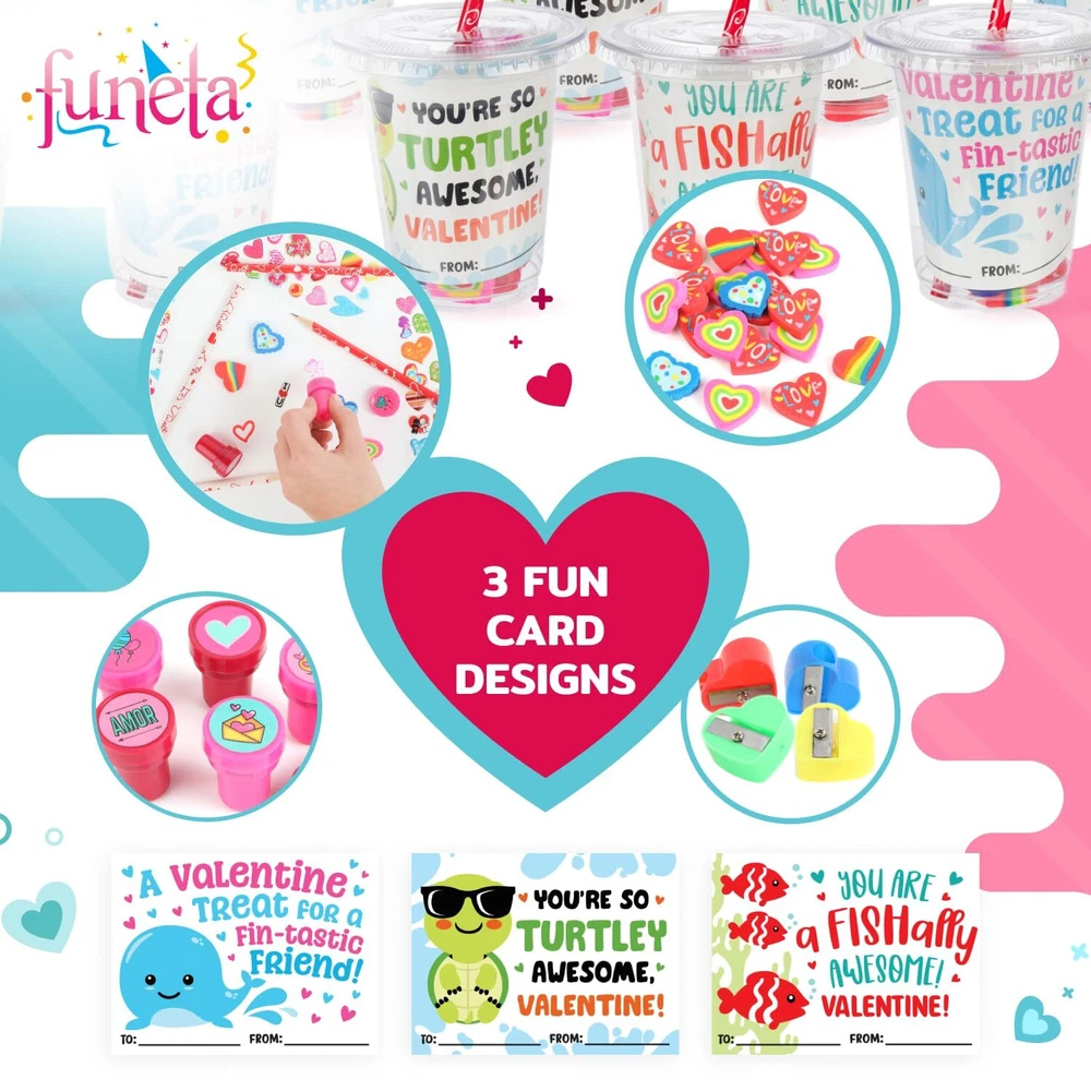 30-Pack Kids Valentine Classroom Gifts Set with Stationery and Cup