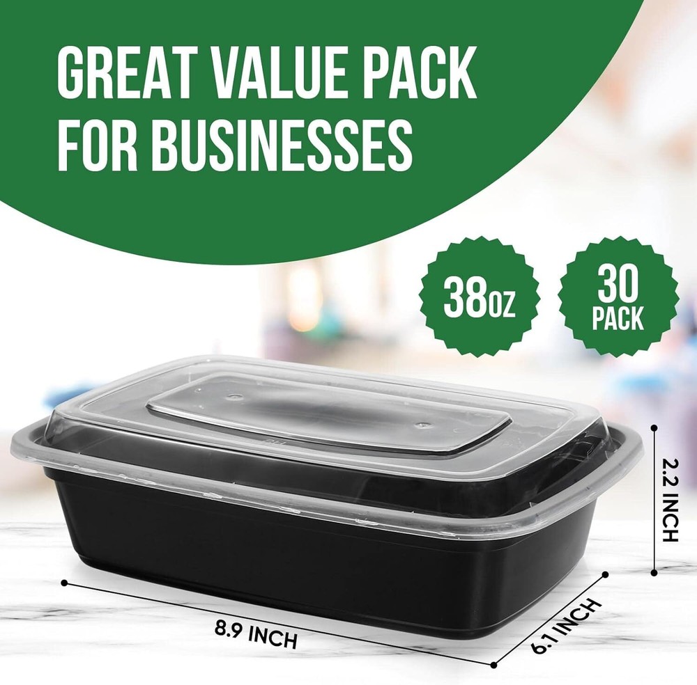 Meal Prep Containers Reusable - 38oz 30 Pack With Product Details Color: 38oz Material: Plastic Brand: TaidMiao Recommended Uses For Product: Meal Prep Special Feature: Freezer Safe Capacity: 2.4 Pounds Theme: Food Item Weight: 2.45 Pounds Product Care Instructions: Hand Wash Only Included Components: Meal Prep Containers Number of Compartments: 1 Closure Type: Snap Style: Transitional Shape: Rectangular Product Dimensions: 9.3"L x 6.3"W x 9.5"H Unit Count: 30.0 Count Material Type Free: BPA Free Number of Items: 30 Item Form: Box Manufacturer: TaidMiao Item Weight: 2.45 pounds Country of Origin: China Item model number: Meal Prep Containers Premium Quality and Durability - Experience the ultimate convenience and reliability with TaidMiao 38oz meal prep containers. Our meal prep containers are crafted from thick plastic material, ensuring long-lasting use and resistance to cracks or leaks. Versatile and Convenient - These containers are designed to meet your everyday needs. With a microwave-safe capacity of up to 248°F, you can easily heat up your meals without worrying about damaging the container. They are also refrigerator safe, allowing you to store your meals at temperatures as low as -4°F. Perfect Dimensions - With a length of 8.9 inches, width of 6.1 inches, and height of 2.2 inches, our containers offer ample space for your meal-prepping needs. The size is ideal for portion control and allows for easy stacking and storage in your fridge or pantry. Generous Pack Size - Our 30-pack of meal prep containers ensures that you always have enough containers for your weekly meal planning. No more running out of containers or compromising on portion sizes. Get your pack today and take the first step towards a healthier, more organized lifestyle.