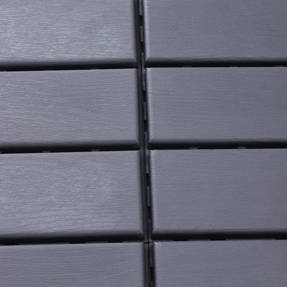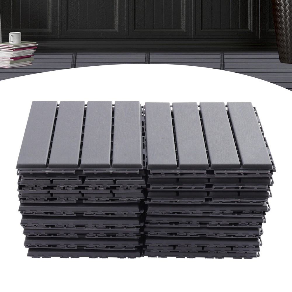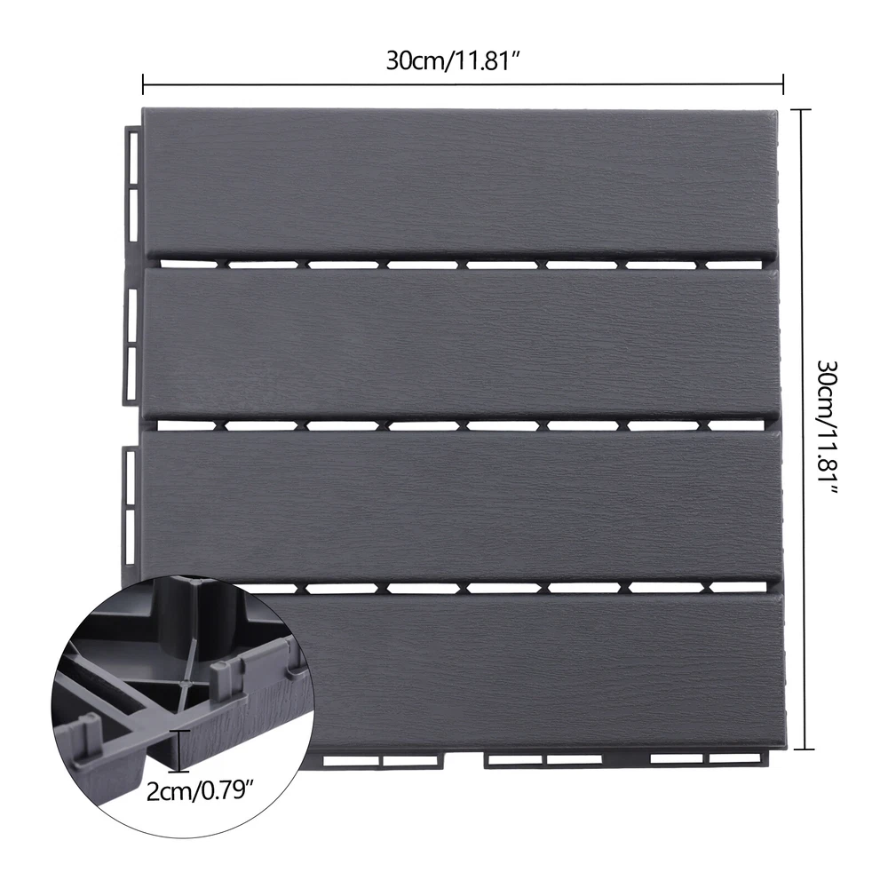 These interlocking deck tiles are a game-changer! Super easy to install—no tools needed, just snap them together. The dark gray wood grain looks stylish and realistic, perfect for sprucing up patios or balconies. Sturdy PP material holds up well outdoors, and the thickness provides great support. Shipping was fast, and the value for 30 tiles is unbeatable. Highly recommend for DIYers wanting a quick, affordable upgrade!