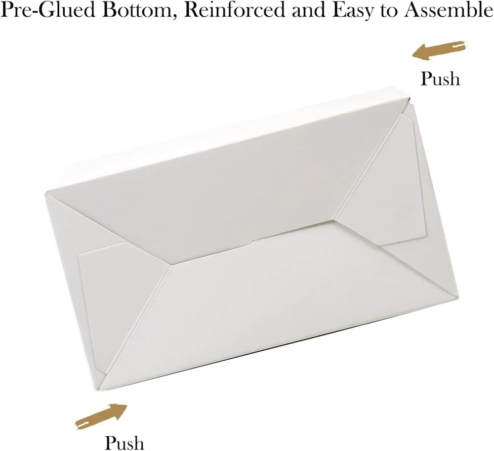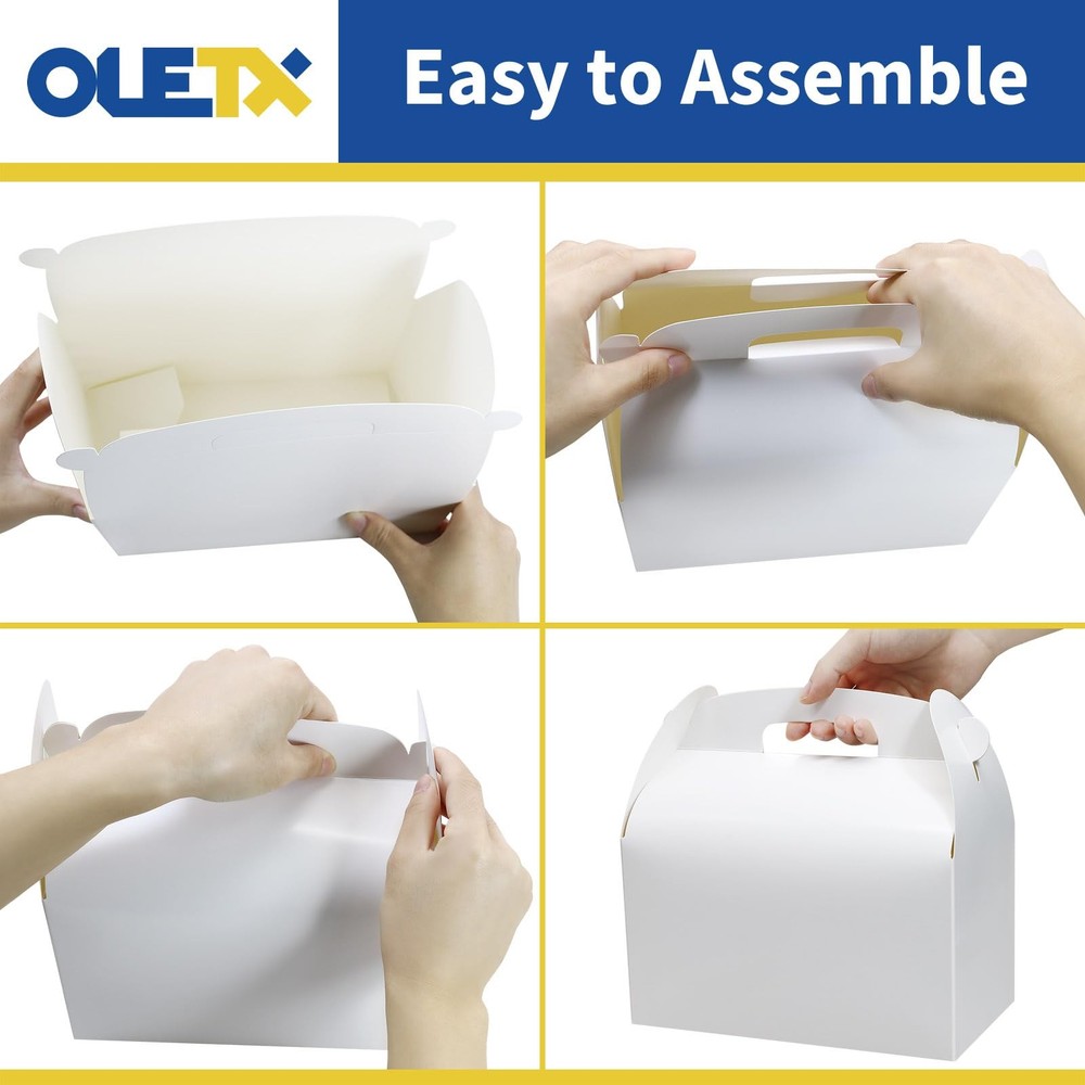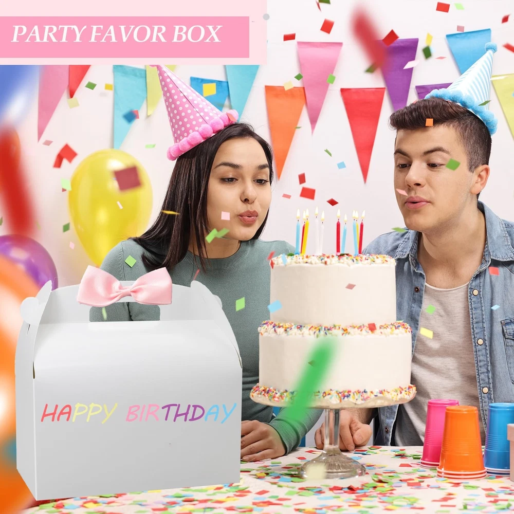 Package set: The craft paper gift box set includes 30 gift boxes, enough for daily using. which is perfect for drinks, candies, goodies, cookies, small toys, donuts, party gifts and more. Premium Quality: The Treat Boxes are made with 350g recycled and food-grade cardboard paper, which is sturdy and non-toxic. Easy to assemble: The gift boxes Set is come in flat pack for convinient packaging. The treat box are super easy to fold, just pressing the corner, then the treat box will pop up and lock into place. White Gable Box Size: The white cardboard box measures 9''x7''x5'', which can fit 6 cans of small drinks. Please make sure it can fit your projects! Package set: The craft paper gift box set includes 30 gift boxes, enough for daily using. which is perfect for sandwiches, muffins, cookies, toys, donuts, party gifts and more. DIY Own Box: White blank paper can be painted writted and decorated. Personalized your own style party favor box. Perfect for birthday party boxes, baby shower gift boxes, classroom party gift boxes, to go treat boxes, etc.