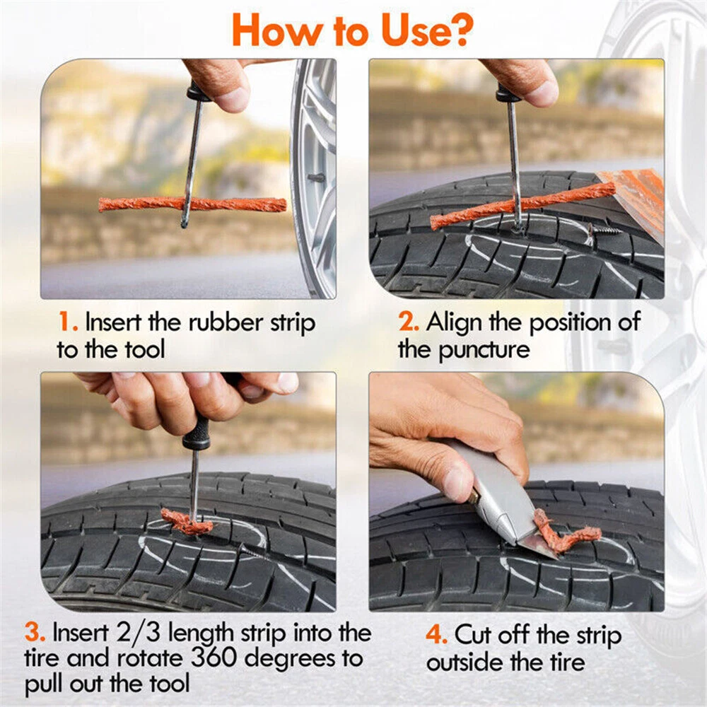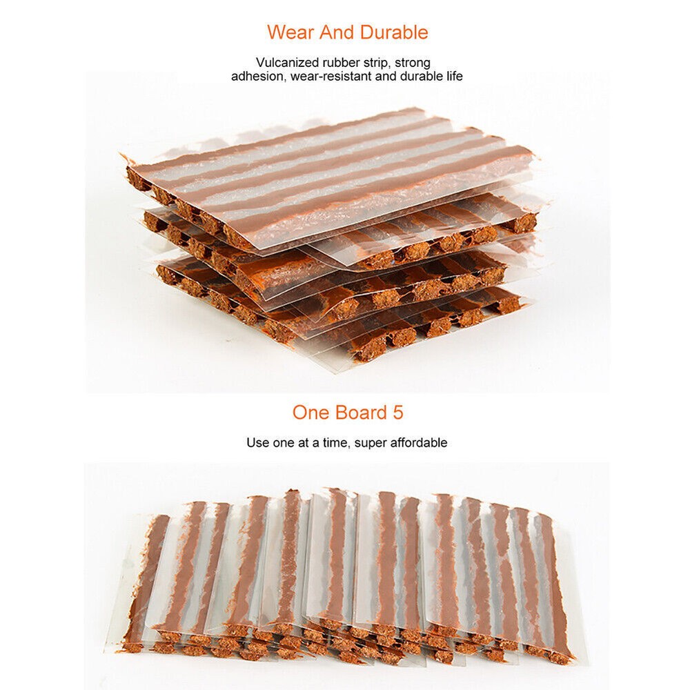 Features: Features: Easily repair punctures without removing the tire from the rim, Tire repair made easy For Tire Repair: Our tire repair strings are the high stickiness design that will your emergency repair tools. Easily repair punctures without removing the tire from the rim, making tire repair much easier. Design: High stickiness tire repair plugs, insure a reliable repair Use for: Car, Bike, ATV, UTV, Wheelbarrow,etc Specification: Type: Tire Patch Plug Material: Rubber Colour: Brown Length about: 7.87inch (200mm) Diameter about : 0.24inch(6mm) Quantity: 30pcs Purpose: Tire Repair Package including: 30PCS Tire Repair plugs Notice: 1. Cause the same car model may be differently produced in different countries. 2. Please ensure the part of your car like our picture shows, or it will not fit!