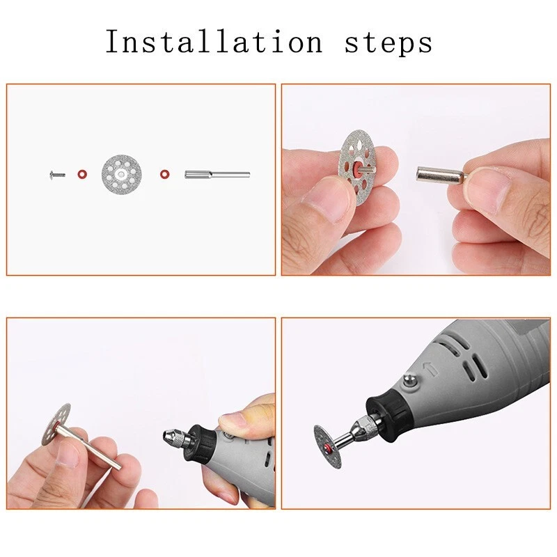 Hello dear customer. thank you for your purchase. If you encounter product problems or operational problems and other problems, you can contact our customer service immediately, and we will solve the problem for you within 24 hours. Please be sure to contact our customer service. I wish you a happy life! ! ! Product Specification Material:HSS / Diamond / Resin Shank Diameter:Approx.1/8" (3mm / 3.3mm) HSS Saw Blades Dia:22/ 25/ 32/ 35/ 44mm Diamond Cutting Disc Dia;25mm Resin Cutting Wheel Dial:32mm Small slit, high precision, high strength, fast work efficiency. Function: Cutting, Grooving and Trimming. Usage: Fit for dremel or other brand most rotary and air tools or Power die grinders. Product Feature HSS Mini Circular Saw Blades: Have 5 sizes (0.88"/ 1"/ 1.26"/ 1.39"/ 1.74") for cutting wood and plastic, case modification, circuit boards and DIY production. High precision and smooth cutting surface. Sharp, durable and long lasting. Diamond Cutting Wheels: Suitable for cutting stone, such as gemstones, glass, ceramics, porcelain, tiles, rocks. Cutting sharp, high density material, invariant and Not burning Wide range of use and long life. Resin Cutting Wheels: Reinforced with fiberglass for increased durability. Perfect for cutting metal including hardened steel, Iron, aluminum. Excellent Gift for DIY Enthusiasts: There are 3 types cutting discs to create a high working efficiency, perfect cutting effect, and convenient to cut, simple to use, safe and reliable. Package Included 30PCS( 5 × Mandrels+5 × HSS Circular Saw Blades+10 × Diamond Cutting Discs+10 × Resin Cut-Off Wheels