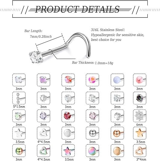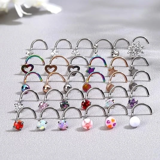 100% Money Back Guarantee if you are not satisfied with your purchase! ____________________ Description: 30Pcs Nose Rings Studs for Women Men 316L Stainless Steel Nose Piercings Jewelry 18G 20G Straight L Shaped Corkscrew Nose Rings Cubic Zirconia Created-Opal Nose Studs Hypoallergenic AFFORDABLE SET: Comes With 30 Pieces Of Nose Rings In A Variety Of Styles And Colors, CZ Nose Studs, Created-Opal Nose Studs, Ball Nose Studs And So On, Different Shapes To Meet Your Daily Needs And Replacements. QUALITY MATERIAL: Made Of 316l Surgical Steel, Healthy And Hypoallergenic, Gentle To Sensitive Skin. Not Easy To Bend And Deform, No Discoloration, No Rust. The Surface Of The Nose Stud Is Polished And Smooth, Comfortable To Wear. STANDARD SIZE: Screw Nose Studs Thickness: 18g (1.0mm), Pin Length: 7mm (0.28 Inch), CZ Size: 2.5mm And 3mm, Created-Opal Size: 3mm, Ball Size: 3mm. Different Sizes Meet Your Different Fashion Needs. VERSATILE USE: Nose Studs Can Be Used As Lip Rings, Cartilage Piercings, Nostril Rings, Nariz Stud Etc, Perfect For Daily Using. It'S A Gorgeous Gift For Yourselves, Lover, Friends On Birthday, Party, Anniversary Day, Valentine'S Day And More. ABOUT US: We’Ll Take Care Of Your Product If Any Damage To The Material Or The Workmanship Of The Jewelry Occurs( Not Cover Lost Items, Scratches That Come With Normal Wear, Improper Use Or Storage Of Your Product). Just Contact Us And We'll Work Together To Find A Perfect Resolution. ___________________ 100% Money Back Guarantee: We offer 30 Day Money Back Guarantee from the day you purchased if you’re not satisfied with your product. If you have any questions about our products, please contact us as soon as possible. Customer satisfaction is our absolute priority. Shipping: We are always working hard to ensure your package arrives as soon as possible. Please understand that some factors like weather, high postal traffic, and the performance of shipping companies are outside of our control. We offer free shipping to the lower 48 states and ship within 3 business days of payment, usually sooner. We do not accept P.O. Boxes. Please provide a physical address. You will be notified via eBay messages as soon as your items ship. Delivery: We will ship out the item in 2-3 working day after receiving the payment. Usually the delivery takes 2-5 business days. If you don't receive the items after 10 days, please feel free to contact us. You will get a replacement or a full refund. Please DO NOT open a return request or leave negative feedback without asking for help. Returns (Get Free Return Label): We offer a 30-Day Return Policy on defective/wrong items or items which you are not completely satisfied with. You have the option for a full-refund or an exchange of the item. No need to buy eBay return label. Contact us via eBay messages and get free return label. Returned items must be in all of the original packaging and include all of the original accessories or items that came with it. The item and package should be in original condition. Contact Us: Any queries or issues incurred, please feel free to contact us via eBay message, we will get back to you within 24 hours. Please DO NOT open a return request or leave negative feedback without asking for help. Feedback: Your feedback is very important to us. After you get your package and you are satisfied with our service, please leave us positive feedback. We are highly appreciated for your POSITIVE feedback and 5 stars. Enjoy shopping.