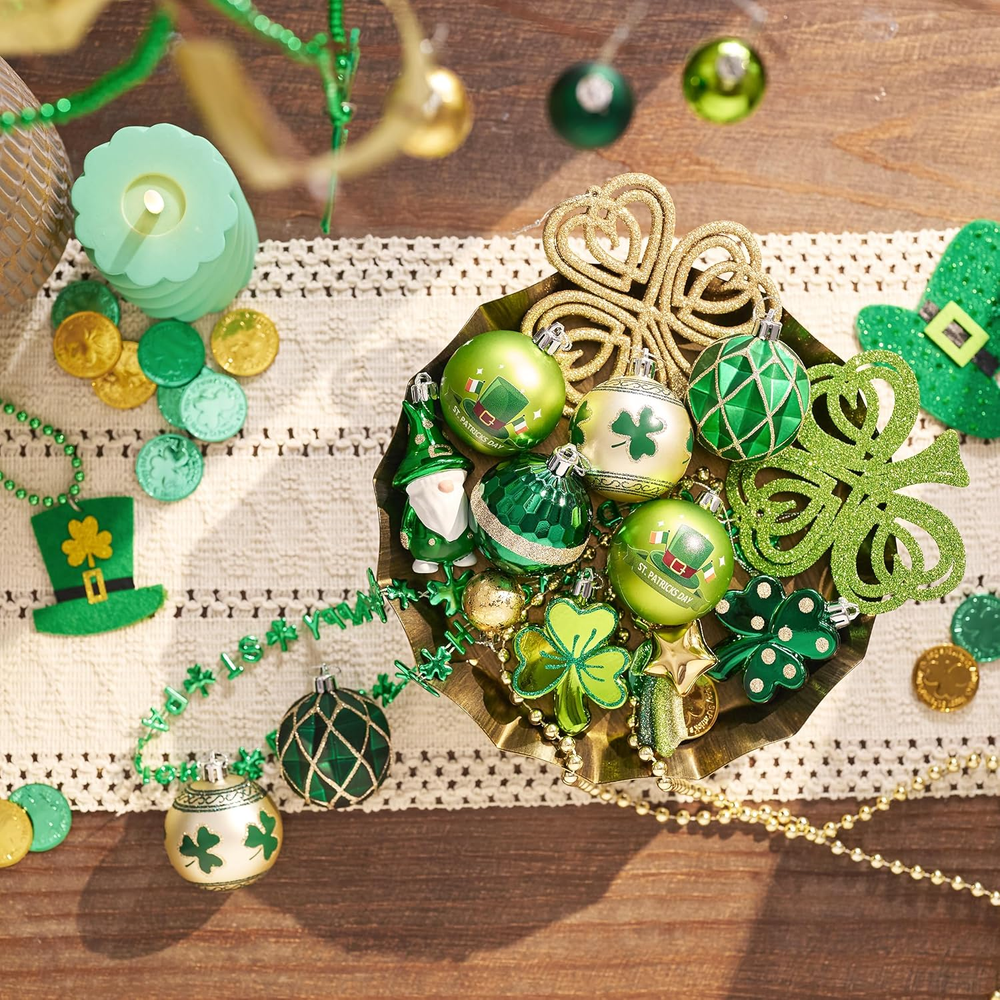 These St. Patrick's Day ornaments are absolutely charming! The emerald green and gold shamrock balls add a festive touch to any space. Perfect for home decor or party styling—durable, vibrant, and so fun. Love the Irish theme and quality details. Highly recommend for anyone celebrating!