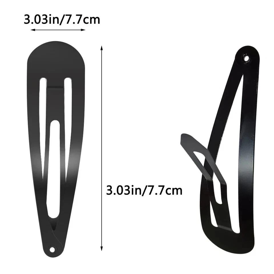 About this item Great Value Set:30 large metal hair clips, all black.Enough for your daily hairstyles and DIY your own clips. Durable Material:The hair clips are made of quality metal with deep color paint,It can fix your hair well,don't slip off,and won't let your hair get stuck.resisting daily wear and drops. Size:With a length of 7.8cm,this hair clip is easy to wear,such as ponytail,curly or straight hair,and easily fix the hair when styling. Convenient storage and carrying: The clip comes with a storage box, and when you use it, you can put the clip back in the box, so that the clip will not be allowed to walk around the corners of the room. You can also carry it anytime, anywhere. Multi-purpose: perfect snap hairpin set, suitable for women, ideal for birthdays, parties, ceremonies, banquets, holidays, etc. You can also DIY to make your favorite fashion style hairpins.Can stick some fashion decorations on it.