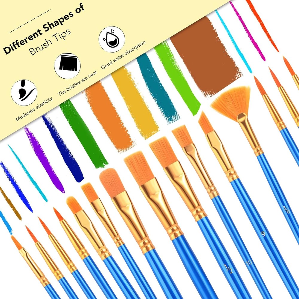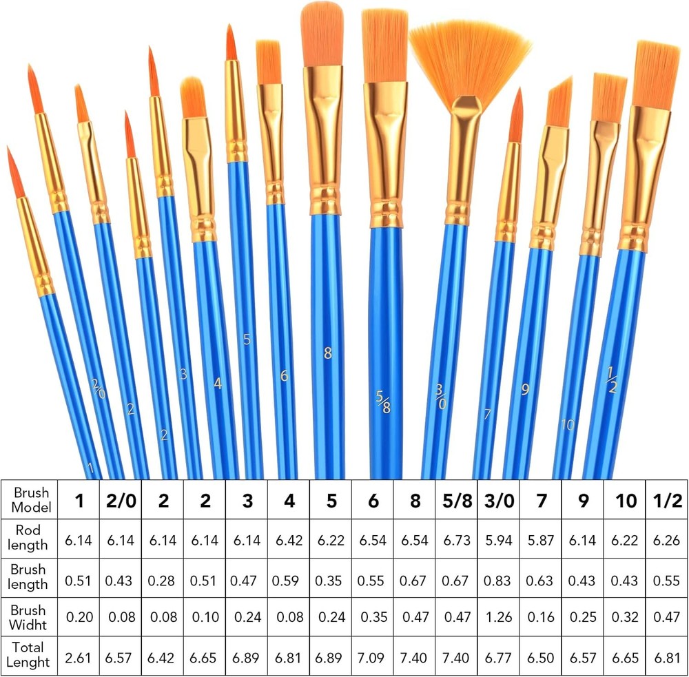 AROIC Acrylic Paint Brush Set, 30 pcs Nylon Hair Brushes 30pcs, Blue Product Details Color: Blue Material: Nylon, Wood Size: 30pcs Brand: AROIC Paint Type: Oil,Acrylic,Watercolor Handle Type: Wood Brush Width: 1.26 Inches Bristle Type: Flagged Bristle Manufacturer: AROIC Package Dimensions: 7.91 x 5.83 x 0.59 inches Item Weight: 3.84 ounces Country of Origin: China Item model number: PaintBrush-30p New 2 PACKS of 15 SIZES ART BRUSHES: The 15 sizes versatile paintbrushes set with a variety of shapes make mixing color more easier, perfect for artists, students, teens, kids and painters of all levels. Wonderful gift idea for your friends and families that enjoy painting! All-purposed Brushes Sets: Professional paint brushes can cover all your needs. The multi-purposed brushes are ideal for watercolor, oil, gouache, acrylic painting, body, nail, face painting, miniature, model, ceramic, craft art painting, etc. High Quality Process: Designed with anti-shedding bristles, anti-rust nickel ferrules, and sturdy wooden handles, you can use the brushes to focus on your painting and always be filled with creative ideas. Easy Maintenance: After using the brushes, it’s very convenient to clean them with warm soapy water and reshape the brush tips. Air-dry the brushes and store them in the carrying container in a tip-top position for long time of use.
