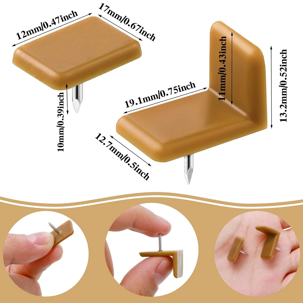Plastic Drawer Glides and Slides Drawer Stoppers for Dresser Tack in (30 Pieces) Rich quantity and proper size: you will get 30 pieces drawer glides plastic in 2 different styles, 20 pieces square shapes and 10 pieces L shapes; Each square shape measures about 1.7 x 1.2 cm/ 0.7 x 0.5 inch, and L shape measures about 12.7 x 19 x 13 mm/ 0.5 x 0.7 x 0.51 inch, sufficient for daily usage and storage Practicality: drawer stoppers plastic can repair broken tables and dressers, reduce the wear and tear of drawers, and make furniture sturdy and stubborn Easy to use: installation is simple and convenient, drawer glide parts are not difficult to install, pointed and strong, easy to nail on the wood block, can be installed with a small plate and small head hammer Modern design: with classic brown color, this drawer stopper features good appearance, simple and generous, suitable for most furniture style Reliable and quality: mainly made of plastic and iron, our furniture drawer glides are sturdy and hard, waterproof and not easy to deform and break, can serve you for a long time Features: Multiple uses: Dresser drawer slides can reduce friction when sliding wooden drawers and reduce wear and tear on drawers, also applied to repair furniture that is difficult to slide or has broken slides. Convenient to install: You can use a small board and a small head hammer to install the drawer replacement part, which make it easier to your installation, and nails are very pointed and strong, and can be easily nailed into the wood block. Specifications: Material: plastic and iron Main color: brown Size: L shape: about 12.7 x 19 x 13 mm/ 0.5 x 0.7 x 0.51 inch Square shape: about 1.7 x 1.2 cm/ 0.7 x 0.5 inch Package includes: 60 x Tack-in drawer glides Warm notes: Please allow a little error on the size due to manual measurement. The color might exist a slight difference due to different displays. Please read the size instruction carefully before purchasing. The drawer glides are small, please keep them away from children and avoid swallowing. Be careful when installing to avoid being injured by pointed nail heads. Shipping We offer FREE shipping on all orders! We ship within Three business days of payment, usually sooner. We use a selection of shipping services such as UPS, FedEx, USPS etc. We only ship to the lower 48 states, no APO/FPO addresses or PO Boxes allowed. Local pickups and combined shipping options are not provided at this time. Return You can return a product for up to 30 days from the date you purchased it. Any product you return must be in the same condition you received it and in the original packaging. Please keep the receipt. Payment We accept payment by any of the following methods: PayPal Please pay as soon as possible after winning an auction, as that will allow us to post your item to you sooner! Feedback Customer satisfaction is very important to us. If you have any problem with your order, please contact us and we will do our best to make you satisfied. Contact Us If you have any queries, please contact us via ebay. We usually respond within 24 hours on weekdays. Please visit our eBay store to check out other items for sale! Thank you for shopping at our store.