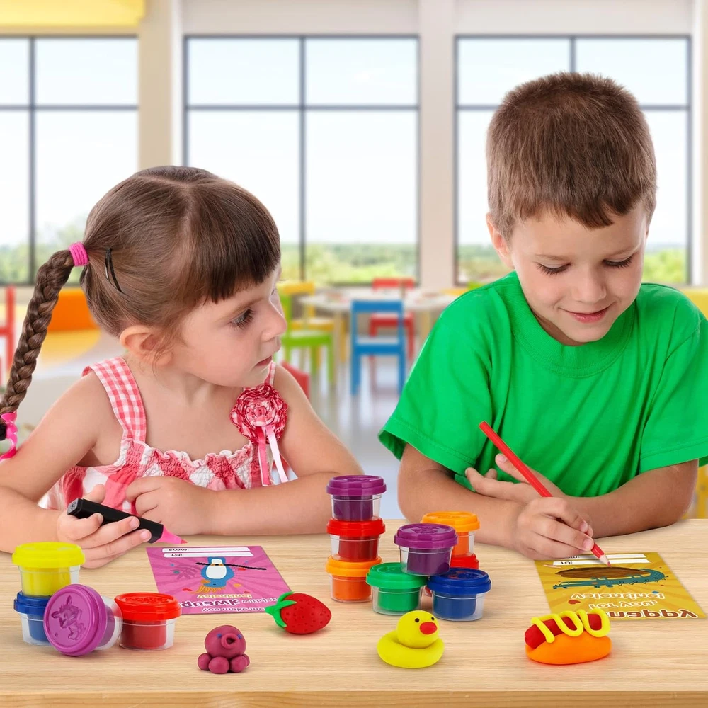 Fun and Creative Valentine's Set: This set includes 30 Punny Valentine's Day Cards and 30 colorful playing dough tubs, offering kids hours of creative fun while making Valentine’s Day extra special. Unique and Playful Cards: The pun-filled Valentine’s Day cards feature charming designs that are perfect for kids to share with friends, spreading joy and laughter. Versatile for Various Occasions: Ideal for classroom gift exchanges, party favors, and prizes, this set is a great choice for teachers, parents, and students seeking hassle-free Valentine’s Day solutions. Premium Quality Materials: The playing dough is soft, durable, and easy to mold, while the cards are made from sturdy, high-quality cardstock, ensuring safety and long-lasting use. Non-Candy and Engaging Gift Option: A healthier alternative to candy, the playding dough inspires creativity and keeps kids entertained, making it a hit for all ages and a thoughtful Valentine’s Day gift! Product Description