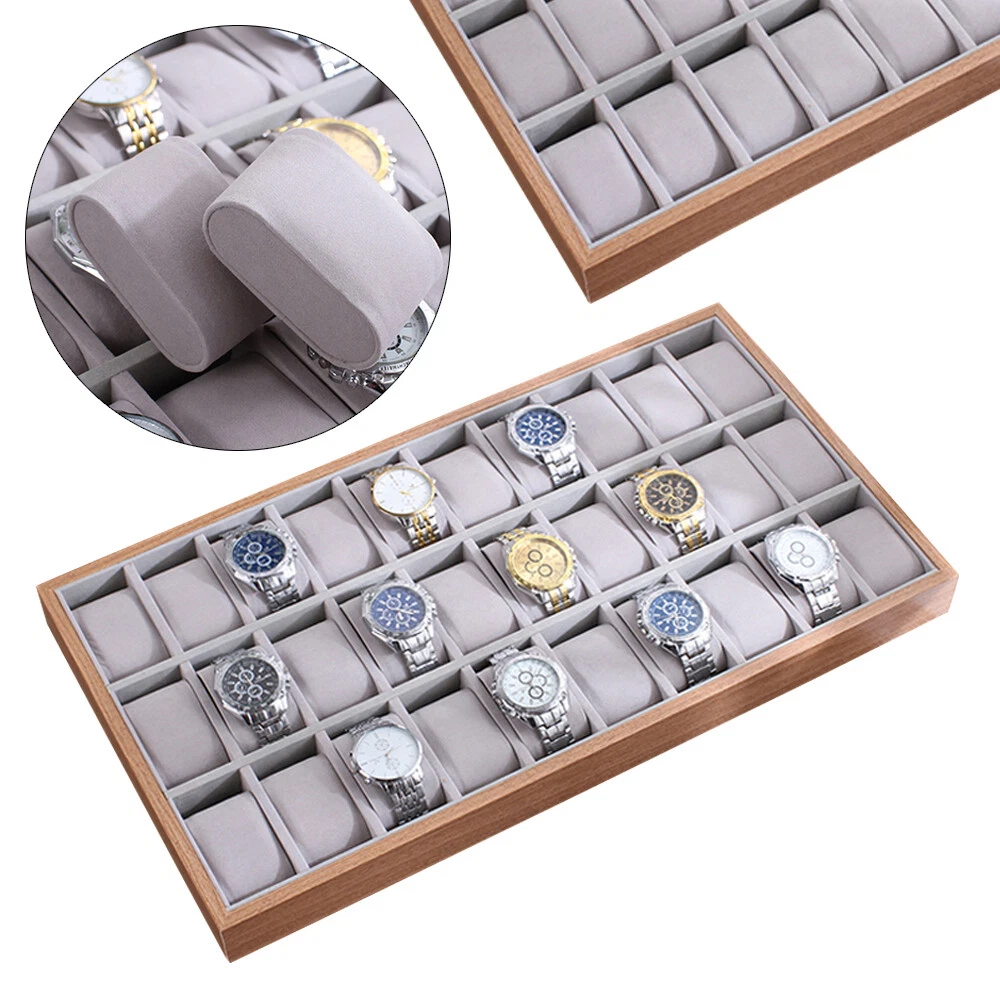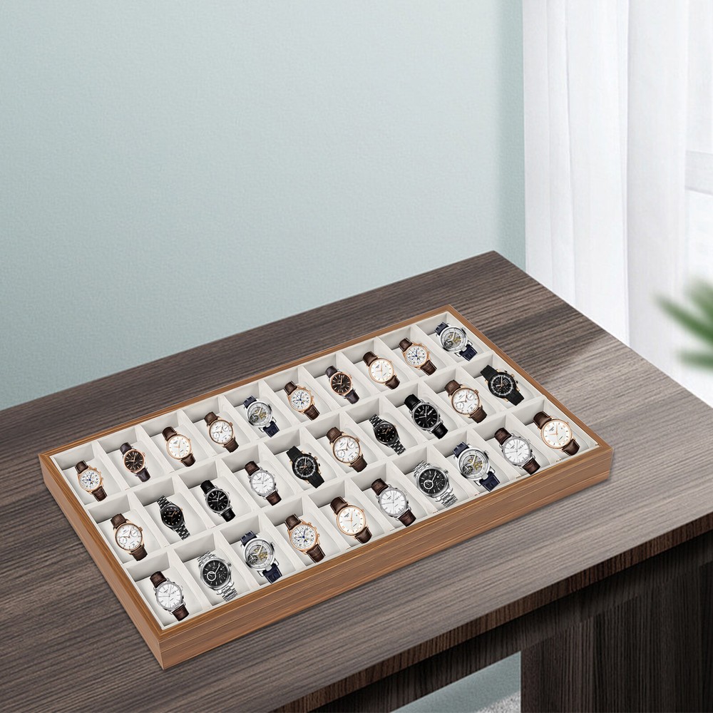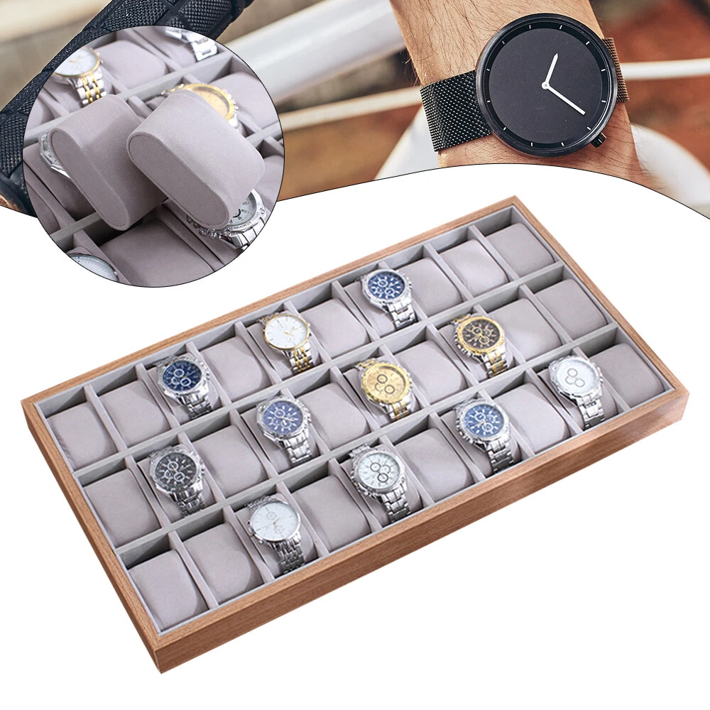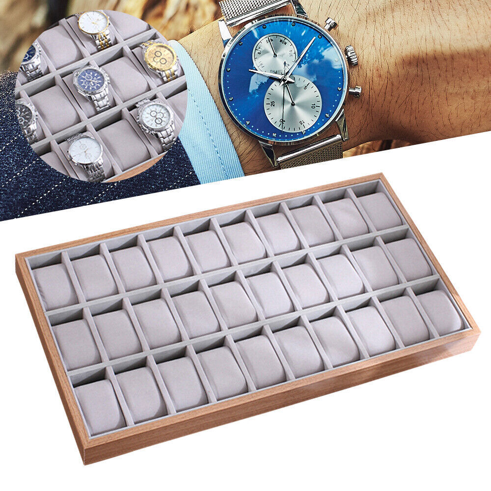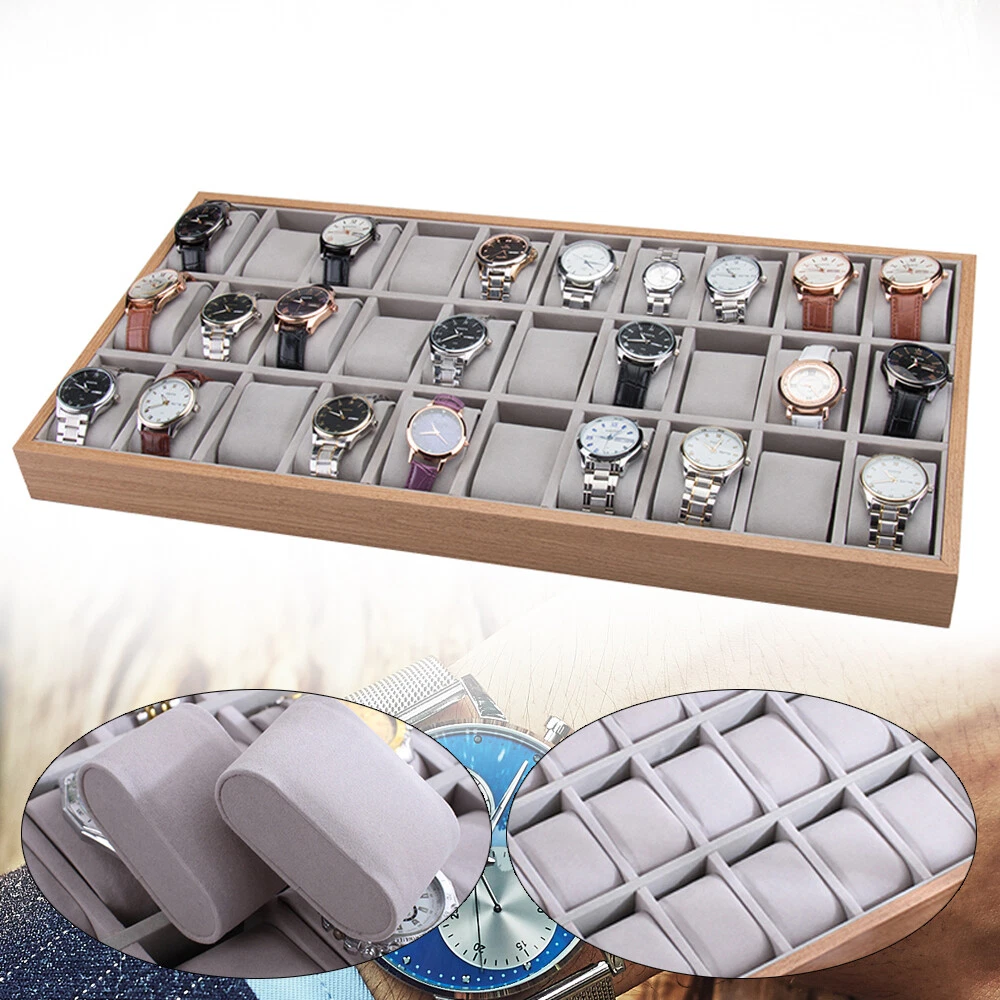 30-Slot Wooden Jewelry Watch Organizer Display Storage Tray Box