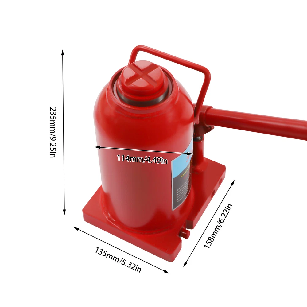 30Ton Hydraulic Bottle Jack 66138lb Lift HEAVY DUTY Automotive New FREE SHIPPING 30ton Hydraulic Bottle Jack 66138lb Lift Heavy Duty Automotive New Free Shipping Description With a Strong Piston Rod, This Hydraulic Jack Has a Strong Lifting Capacity of up to 66,138 Lbs, Which Makes It Possible to Lift a Variety of Heavy Items Quickly and Securely . the Compact Design Is Not Only Easy to Carry, but Can Also Work in Tight Spaces. with This Jack, You Can Quickly Jack up Your Car with Just the Slightest Movement, Saving Time and Effort! Key Features Sturdy and Durable: It Is Made of High-quality Alloy Steel with Baking Paint Treatment on the Surface, Which Is Very Reinforced, Anti-oxidation, Anti-rust, and Impact-resistant, for a Strong Inclusive Working Environment As Well As Ensuring a Long Service Life. Powerful Lifting Force : the Smooth Surface of the Piston Rod Is Beautiful, Anti-corrosion , and Also Has Strong Pressure Resistance, with a Strong Lifting Force of 30t/66,138lbs. Sufficient Lifting Height: in Addition to the Height of the Jack Body (9.25in), the Piston Rod (5.7in) and Screw Rod (2.36in) Can Be Raised to Increase the Stroke, so That the Jack Can Be Lifted Higher (up to 17.32in) to a Wider Range of Uses. High / Low-temperature Resistance: the Hydraulic System Uses High-quality Lubricants for Better Corrosion Resistance and High/Low-temperature Flexibility Allowing It to Operate at Temperatures Between -4°F and 113°F. Compact and Portable: Its Compact Size Is Suitable for Narrow and Low Working Spaces, and Can Be Easily Carried in the Trunk of a Vehicle. in Addition, It Has a Handle That Makes It Easy to Move and Carry to Any Location. Good Sealing: It Uses a Rubber Oil Plug with a Seal Inside, Which Ensures a Good Seal Against Oil Leakage. High Safety: It Is Equipped with a Safety Valve That Can Automatically Protect the Hydraulic System in Case of Overload to Prevent Damage to the Jack. at the Same Time, the Height-limiting Device Prevents Over-pumping and Gives You Safety Assurance. Customer Service: We Aim to Provide Quality Products and Services. If You Have Any Problems, Please Feel Free to Contact Us. We Will Reply and Solve the Problem for You As Soon As Possible. Details Oil Return Valve: the Oil Return Valve at the Bottom Makes It Easy to Raise the Piston Rod and Retract the Rod to the Cylinder After Use, Tightening Clockwise to Raise and Loosening Counterclockwise to Lower. Practical Rocking Lever: It Adopts a Spliced and Extended Lever, Which Can Easily Twist the Oil Valve and Press the Jack Manually, Which Is Labor-saving and Practical. It Can Also Be Disassembled for Easy Carrying and Storage. Enlarged Base: It Is Designed with an Enlarged Square Base(6.22*5.31in) to Increase the Contact Area with the Ground, Ensuring Stable Placement Without Shifting or Shaking When Working. Anti-slip Top : the Top of the Jack Is Designed with a Criss-cross Pattern for Good Anti-slip and Stability to Improve Safety. Application It Can Be Used in Military Applications, Agriculture and Industrial Environments to Lifting Cars, Trucks, Suvs, Farm Vehicles, Heavy-duty Machinery and Industrial Equipment. How to Use Insert the Grooved End of the Pressure Lever into the Return Valve and Tighten Clockwise. Adjust the Height of the Adjusting Screw According to the Height of the Car Body. Insert the Jack Handle into the Handle Sleeve. Shake the Handle up and down to Lift the Body to the Desired Height Smoothly. When Lowering, Turn the Return Valve Counterclockwise 1-2 Turns, Remember to Turn Slowly, and the Return Valve Can Not Loose More, Otherwise It Will Lead to Oil Leakage. Specifications Material: Alloy Steel Color: Red Process: Baking Paint Operation Temperature: -20~45°C/-4~113°F Body Height: 23.5cm/9.25in Lifting Height: 14.5cm /5.7in Adjustment Height: 6cm /2.36in Maximum Lifting Height: 44cm /17.32in Housing Diameter: 11.4cm/4.48in Base Size: 15.8*13.5cm/6.22*5.31in Product Height: 23.5cm/9.25in Gross Weight: 11kg/24.25lbs Net Weight: 10.5kg/23.14lbs Loading Capacity: 30t/ 66,138 Lbs Packing Size: 17*14*25cm/6.69*5.51*9.84in Package Included 1* Hydraulic Cylinder Jack 3* Levers 1* English Manual Notes Please Read the Operating Manual Completely Before Use. and Pay Particular Attention to the Safety Instructions Included. This Is a Hydraulic Jack and Cannot Be Used for Jacking or Fixing for a Long Time. It Is Prohibited to Screw out the Oil Valve, Otherwise the Use of the Product Will Be Affected. Overload Operation Is Strictly Prohibited. Please Use Above the Hard Support Surface. Please Do Not Lift the Jack to the Top When There Is No Load. If the Jack Cannot Be Lifted, Please Check Whether the Oil Valve Is Tightened. Park the Vehicle on a Level and Hard Ground Before Using the Jack, and Open the Danger Warning Sign Behind You. When the Jack Supports the Vehicle, It Is Strictly Forbidden to Enter the Vehicle Bottom! Observe the Car Chassis and Put the Jack Inside the Side Frame. To Ensure the Normal Use of the Jack, Please Keep the Jack Piston Rod Clean and Lubricated. When the Jack Is Not in Use, the Oil Drain Valve Should Be Closed First and the Jack Should Be Placed Vertically, Otherwise Oil Leakage Will Occur! The Paint May Drop and some Jacks May Leak Oil During Express Delivery, Which Will Not Affect the Use. Please Make Sure You Don't Mind Before Ordering. Please Allow the Slight Color Difference Caused by the Shooting Light and 1-3cm Error Due to Manual Measurement, and Make Sure You Do Not Mind Before You Order. Payment Delivery details Terms of sales About us Contact us Payment We accept ebay payment 。 Fees such as import duties, taxes are not included in the item price or shipping costs. These charges are the buyer's responsibility. Delivery details Shipping: 2-9 working days to: USA Terms of sales We maintain high standards of excellence and strive for hundred percent customer satisfaction. Feedback is very important to us. We hope that you contact us immedia