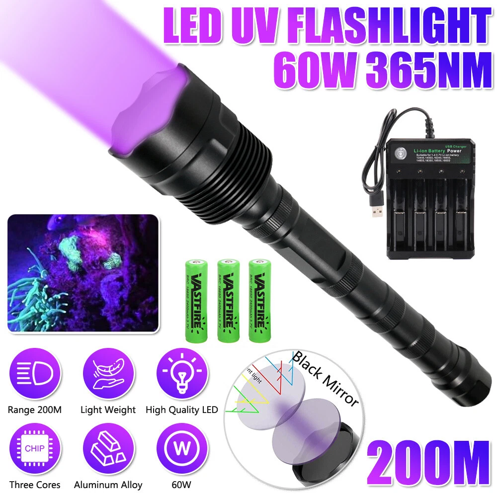 You may also like TAC 2 in 1 Hunting LED Rifle Flashlight & Green Laser Sight Combo For 20mm Rail 35.99 USD Free shipping 1000Miles Green Laser Pointer Pen USB Rechargeable Visible Beam Light Lazer 6.99 USD Free shipping 5mW Adjustable Blue BLaser Pointer Visible Dot Torch Light 37.99 USD Free shipping Red Laser Pointer Red Light Visible Beam Lazer Rechargeable USB Rechargeable 5.99 USD Free shipping Tactical 45 Degree Offset 1" Scope Ring Flashlight Picatinny Light Laser Mount 7.99 USD Free shipping Tactical Red Laser Beam Dot Sight Scope For Rail Weaver 8.88 USD Free shipping Tactical Mini Red Dot RMR Reflex Sight Scope for Glock 17 19 W/20mm Mount 29.88 USD Free shipping 2 MOA Shake Awake Red Dot Sight Scope for 1x20mm Sig Sauer Romeo5 SOR52001 M1913 52.99 USD Free shipping 14250 CR2 Battery 280mAh Li-ion 3.7V Rechargeable Batteries For Laser Light 3.59 USD Free shipping US STOCK compact 4X32 Compact Scope 223/ 308/ Crossbow Scope /w Rings With Clip 26.99 USD Free shipping 3 Slots 1" Scope Riser Mount Fit 20mm Picatinny Rail for Optics Red Dot Sight 7.89 USD Free shipping Tactical Rail Red dot Scope Sight Polymer Base Mount for Glock G17 G19 11.89 USD Free shipping 1000M USB Rechargeable 1mW Green Laser Pointer Pen Visible Beam Light Lazer US 5.99 USD 3.67 USD Set of Bike Turn Signals Light Tail Rear w/ Smart Wireless Remote Control USB 14.89 USD Free shipping Tactical Green/Red Laser Lazer Beam Dot Sight Scope Mount Rifle Hunt# 8.88 USD Free shipping 2000Miles Rechargeable Lazer Red Laser Pointer Pen Astronomy Visible Beam Light 12.88 USD Free shipping 11mm Dovetail to 20mm Rifle Base Scope Mount /20mm Extend Picatinny Rail Adapter 5.99 USD Free shipping Universal Barrel Clamp for Shotgun Rifle Flashlight Scope Tube Gun Mount Adapter 8.99 USD Free shipping Product Description 365nm UV Light LED Flashlight Blacklight Inspect Detector Torch with Battery US 10W 365nm UV Light: Material: Aluminum Alloy Wavelength: 365nm Lighting distance:> 50 meters Service life: 120,000 hours Battery type: 1 * 186/50 battery (included) Lighting time:> 14Hrs IP rate: IP65 waterproof Package includes: 1*UV Flashlight 1*USB charging cable 1 x 2400mah battery 30W 365nm UV Light: Material: aluminum alloy Violet wavelength: 365NM Violet power: 30W Battery: 1x battery(included) Dimensions: 13.7*3*2.7cm N.W: about 100g Light color: four core purple light bulb Lens colour: black Mode: 1 modes: ON - Off Package includes: 1*UV Flashlight 1*Type-C charging cable 1 x 2400mah battery 60W 365nm UV Light: Made of aluminum alloy; matt black, It is waterproof and shockproof twist to remove the tail, install the 2 or 3 batteries, close and tighten the tail, take out the batteries when it is not used for a long time battery must with protection board to keep it from over discharged the flashlight will flick and then turn off automaticlly when the battery is out of power, to keep it from over discharged Light bulb: 3 x P50 365nm uv light Material: Aluminum alloy Purple light wavelength: 365nm Purple light power: 60W Battery: For 2 or 3Pcs rechargeable battery Dimensions: 222mm / 289mm(length) x 55mm(head) x 27mm (Tail) Net Weight: 394G Packing list: 1 x UV Flashlight 3 x battery 1 x charger 120W 365nm UV Light: Light-emitting diode: 6 * 365nm UV light-emitting diode Power: 120W Mode: High-low Lamp life: 100000 hours Flashlight color: black Emission color: UV Switch: middle button switch (smart battery reminder) Shell data: Aluminum alloy Size: 138mm (L) * 59mm (TD) * 53mm (WD) Weight (g) : Approx. 339g/0.95LB (excluding packaging) Function: TYPE-C USB interface Battery: suitable for 4 * 186/50 battery Can live waterproof (can be used in rainy days), but can not dive, can not soak in water Packgage Type: 1 x Ultraviolet Flashlight 1 X Type-c USB Line 4 x 2400mah battery Application area: 1. capture the scorpion, and ticket inspection. Passport, credit card, identity card. 2. animal urine test. 3. paper towels, cosmetic face masks, children's toys, clothes 4. Disinfection sterilization. 5. Anti-fake detection 6. Fluorescent phosphor powder detection agent. 7. ore jewelry jade detection ...... About the upgraded version: 365nm Wavelength Payment Shipping Terms Returns Contact Us About Taxes 1. We accept payment via PAYPAL ONLY . 2. Payment must be made within 4 days of auction closing. (Non-payment may result in a UPI (Unpaid Item) being put on your account. eBay will automatically close your account if you accumulate 4 UPI's total.) 3. TOTAL AMOUNT DUE includes the final auction price plus S&H(Shipping and Handling). 4.S&H will be determined based upon the SHIP TO address, Tax and customs. PLEASE NOTE: S&H DOES NOT INCLUDE DUTIES, LOCATL TAXES OR ANY OTHER IMPORTATION FEES. We are not responsible for any custom duty or import tax. 5. Please list your special requests (color, packages, etc.) in the PAYPAL NOTES SECTION when you make payment. Our working hours Beijing time from 9:00 a.m. to 18:00 p.m . Monday to Friday Item will be shipped from US/DE/UK warehouse;within 1 days after payment received, usually delivery time 24-72 hours. Warranty: 1. One Year Manufacturer's Warranty for defective items (excluding items damaged and/or misused after receipt). Accessories come with a 3-month warranty. 2.If buyer requests a return when there is no quality problem of the item he received,return postage has to be paid by buyer,and postage for the item won't be returned. 3.If item is damaged or defective on arrival,buyer can either requests a refund or replacement,and postage will be paid by us,meanwhile,the item must be returned. Note: A. Customs duties is neither included in the item value nor the postage,which should be in the responsibility of buyers. B. Please check with your country's customs office to determine what these additional costs will be prior to bidding/buying. 1. You have 7 days to contact us and 10 days to return it from the date it was received. WE WILL ISSUE YOU A REFUND OR REPLACEMENT ! 2. All returned items MUST BE