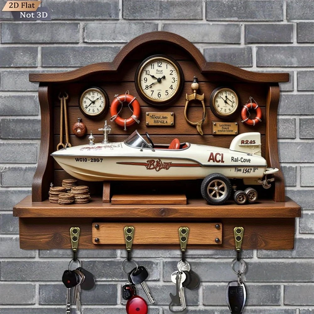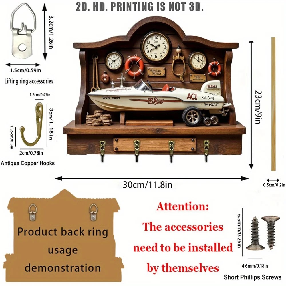 $ 15.2830cm Wall Key Holder β Vintage Country Style 2D Organizer 4 Hooks Entrance