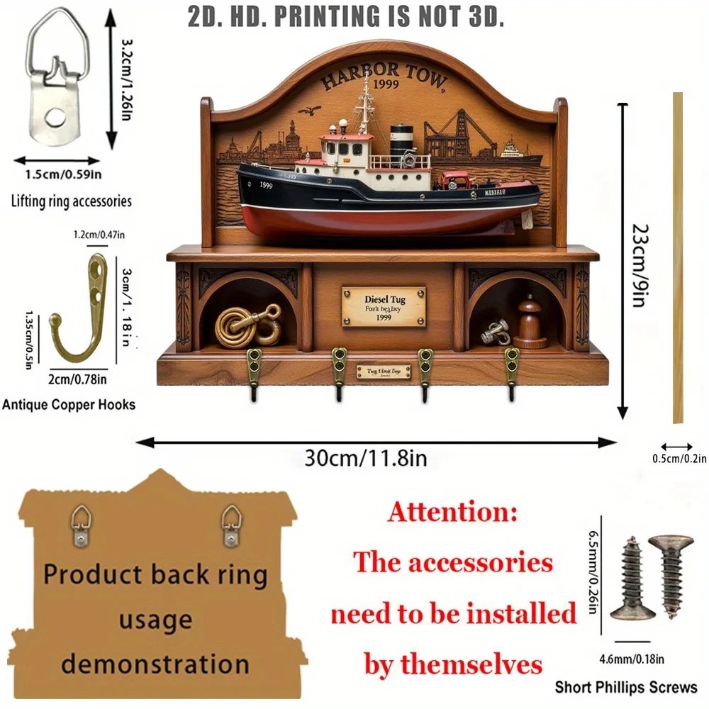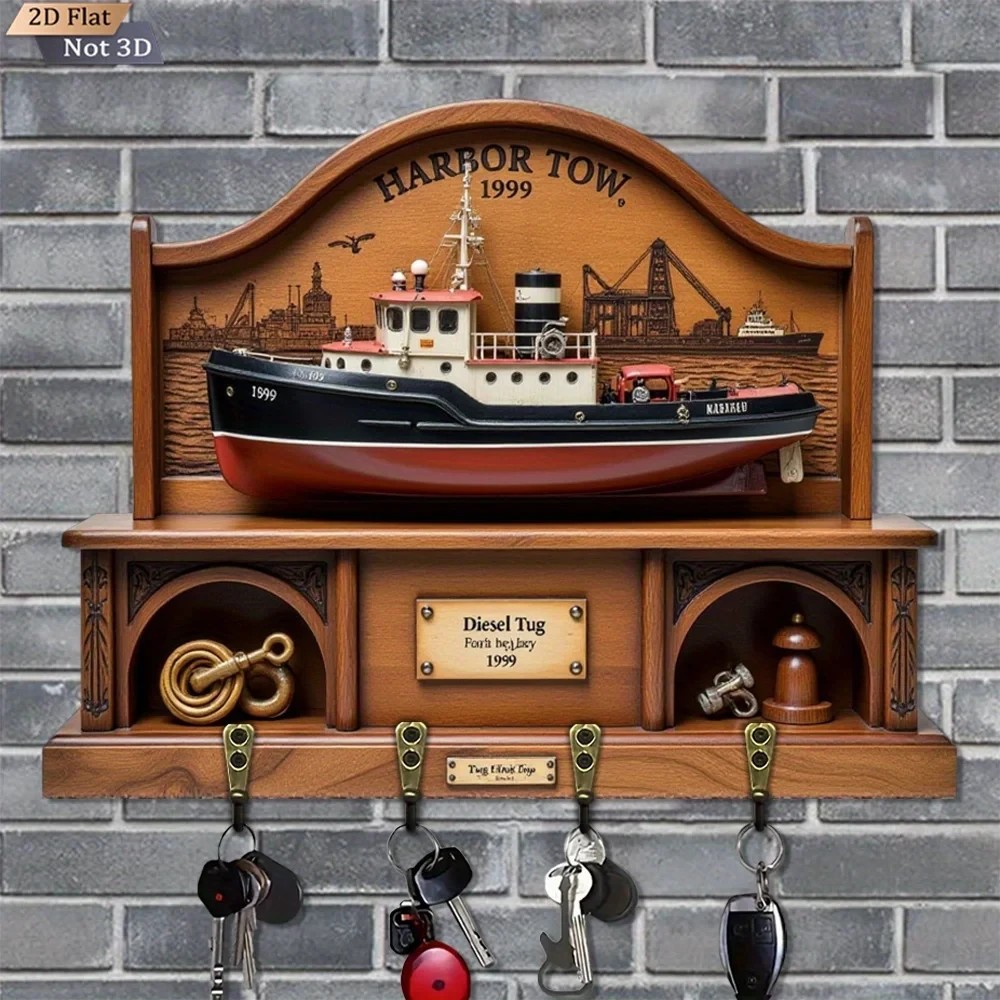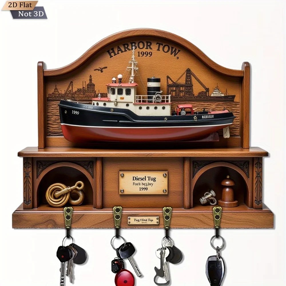 30cm Wall Key Holder β 2D Navigation Acl Boat 4 Hooks Entrance