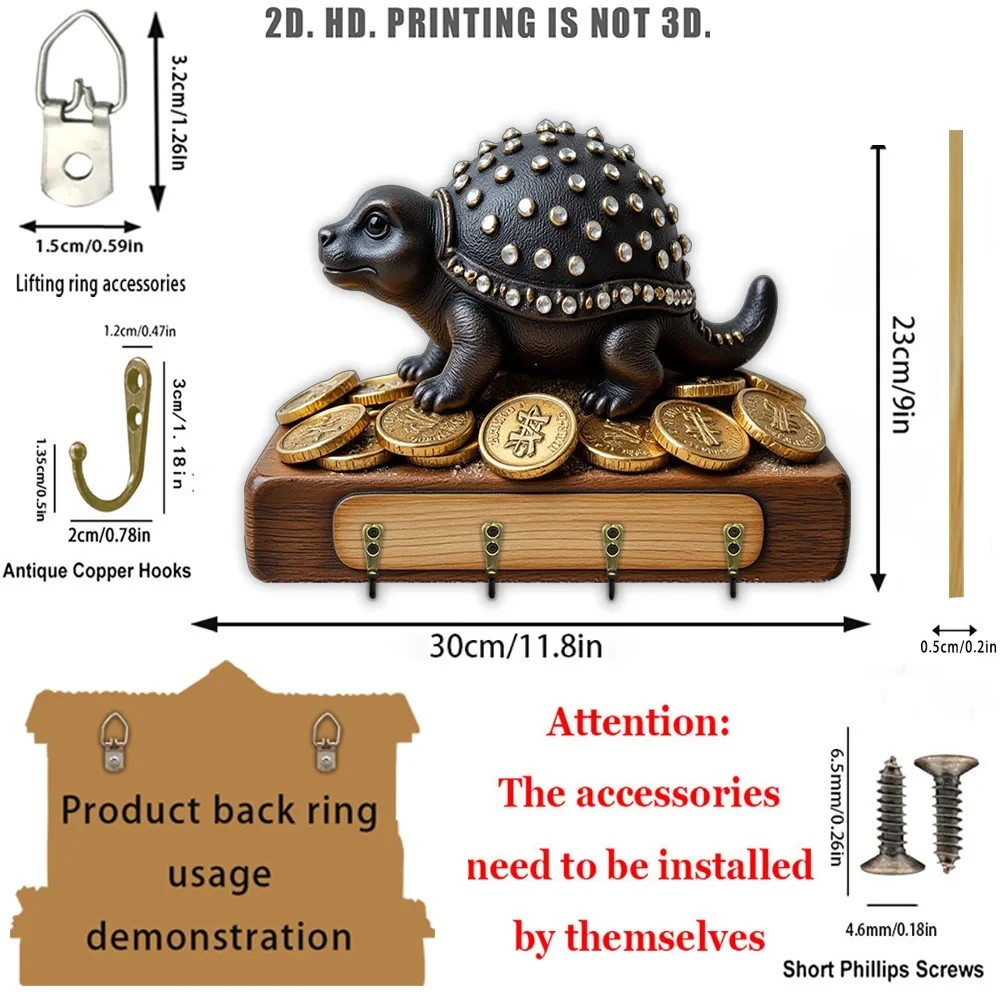 30cm Wall Key Holder – Golden Turtle 2D Organizer 4 Hooks Entrance
