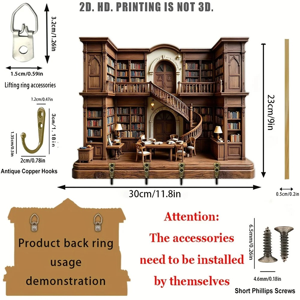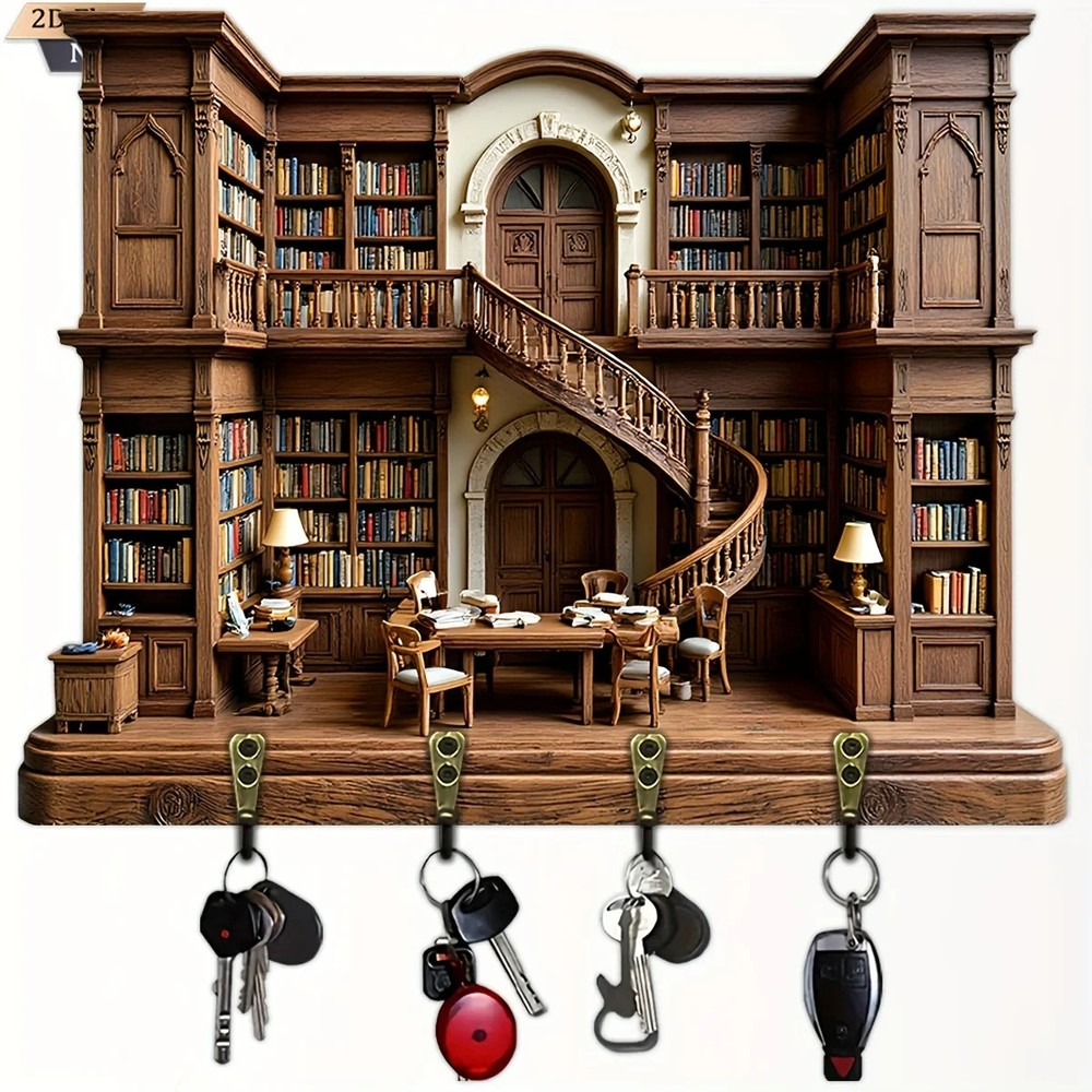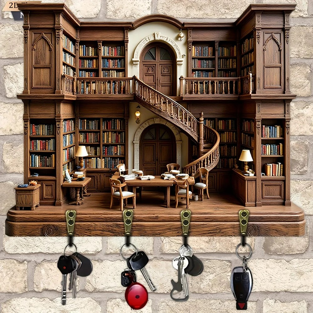 30cm Wall Keychain - Retro Train Station Organizer 2D 4 Hooks Entrance