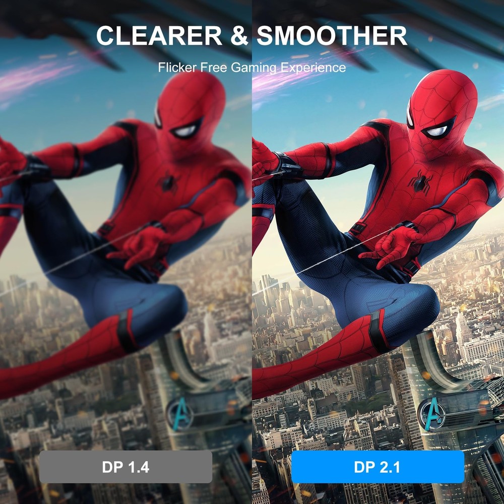 【Displayport】8K Displayport Cable support resolution up to 7680x4320, refresh rate up to 8K@60Hz, 4K@144Hz, 4K@165Hz. 8K DP Cable supports Dynamic HDR and HDCP 2.2. Backward compatible with DisplayPort 1.3/1.2. Supports transmission speeds up to 32.4Gbps 【8K@60Hz Super Resolution】DisplayPort to DisplayPort cable supports video resolutions up to 8Kx4K @60hz. Transmits high-definition video and audio simultaneously from any DisplayPort-equipped device to an advanced HDTV, monitor or projector. Flawless audio pass-thru for uncompressed digital 7.1, 5.1 or 2 channels. 【Thoughtful Design+Anti-Interference】Display Port cable is the first to use non-locking buckle design to avoid damaging your equipment when pulling out monitors and graphics cards. Our DisplayPort cable is made of 28AWG tinned copper and features triple shielding to ensure stable signal transmission, no worry about artifacts and audio/video synchronization problems. PVC material+24K Gold Plated connectors, stable heat dissipation while extending product life 【High Bandwidth Speed】Our displayport to displayport cable can provide 240Hz refresh rate, HBR3 support bandwidth. The high refresh rate and high resolution give you an excellent gaming experience with no motion blur, screen tears or flickers, allowing you to clearly perceive enemy movement. Support for dynamic HDR and HDCP 2.2, dynamic HDR can optimize the game's dark screen, making the picture richer and more realistic, especially in FPS, 3A big titles and MOBA games. 【Wide Compatibility】This display port cables directly be connected from DisplayPort-equipped desktop/laptop to monitor. Compatible with Sceptre, Odyssey G7 G9, Dell, HP, Acer, LG, iiyama, Alienware monitors and others. Supports DP, DP++, and DisplayPort++. Suitable for Graphics cards and monitors with displayport ports (Do not use extensions or adapters, signal conversion will reduce the performance)