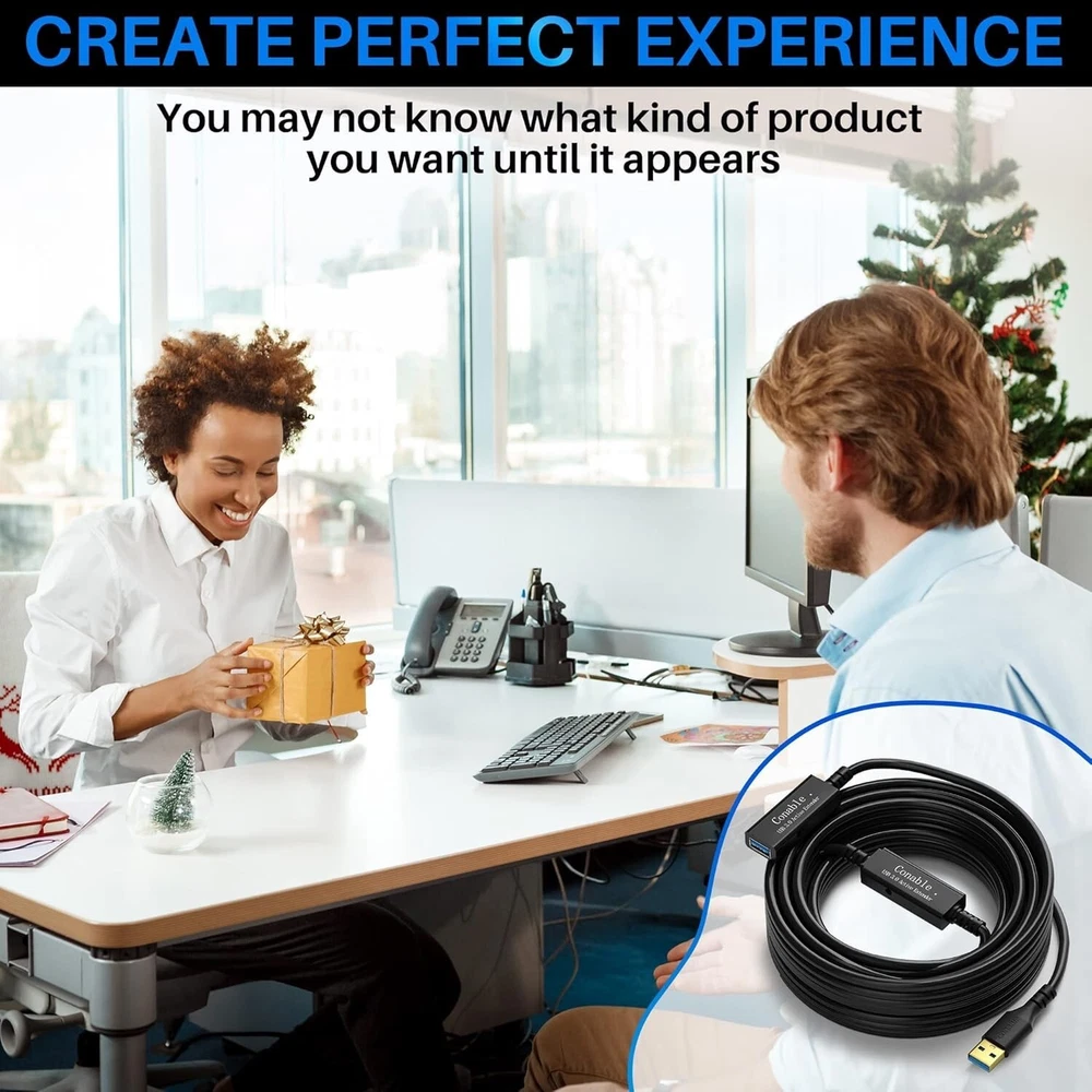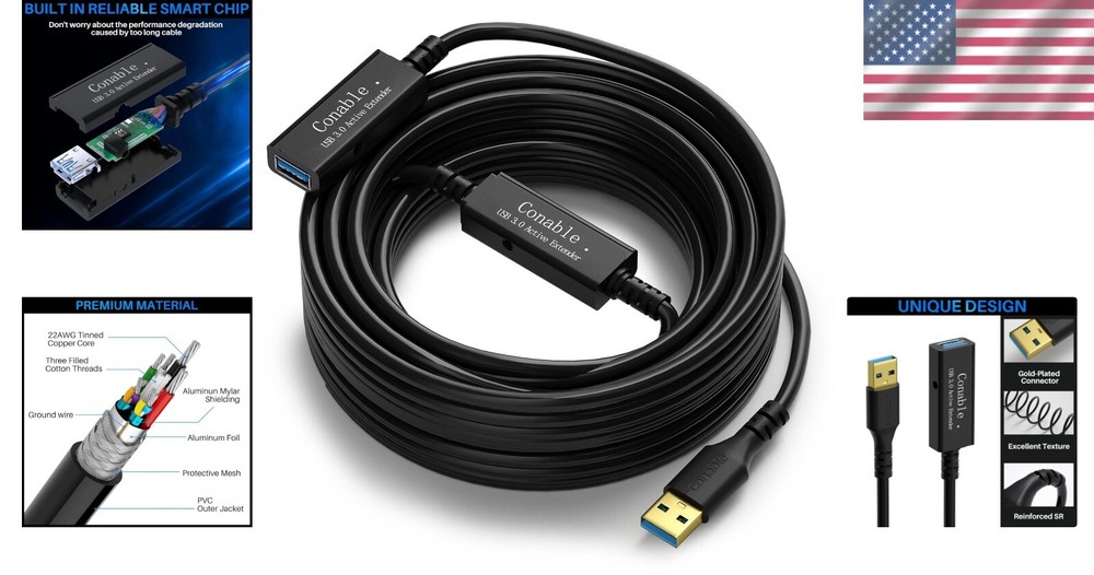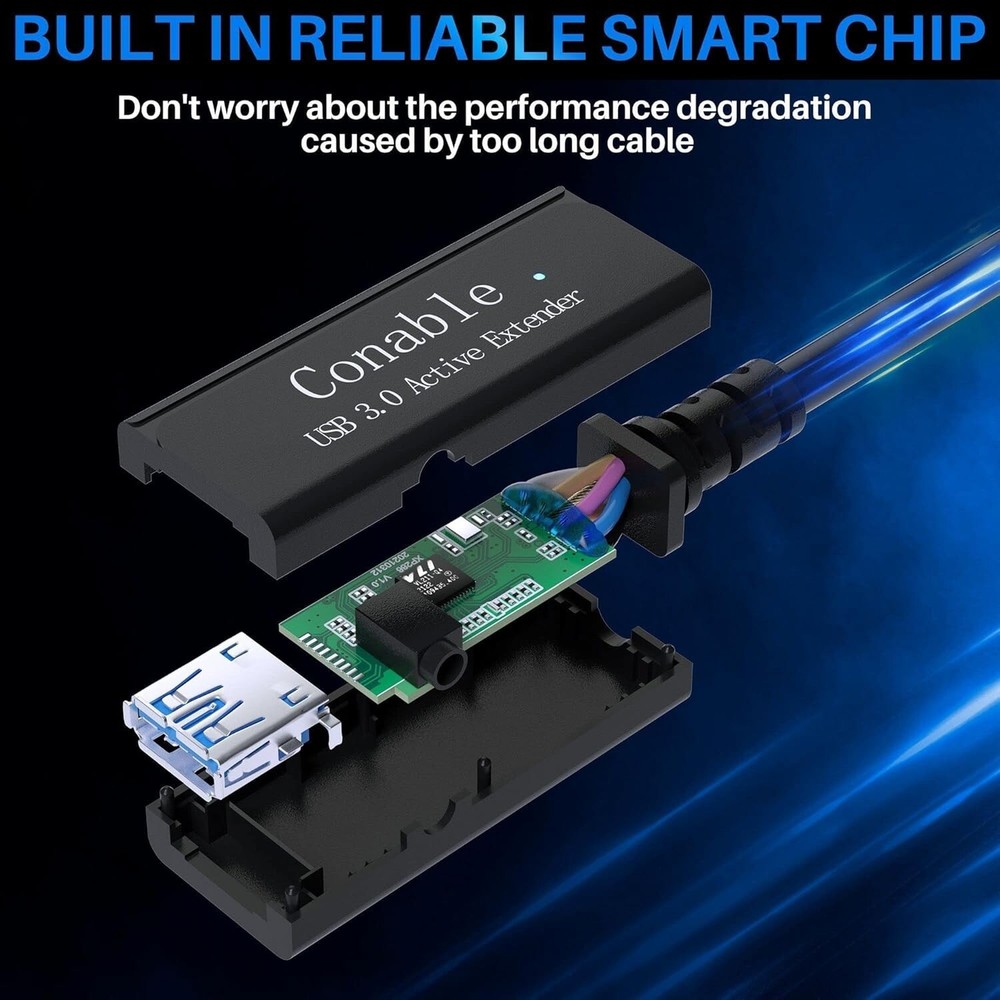 This USB 3.0 extension cable is a game-changer! The 30ft length is perfect for hard-to-reach setups, and the built-in signal amplifiers ensure fast, stable data transfers without lag. It works flawlessly with all my devices, from external drives to printers, delivering blazing 5Gbps speeds. No more dropped connections—just reliable performance. Highly recommend for anyone needing extra reach without sacrificing speed!
