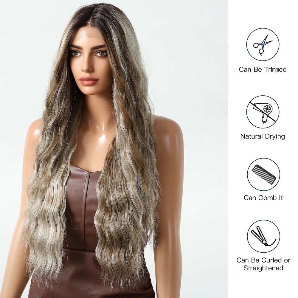 This wig is a game-changer! The 13x6 lace front blends flawlessly with my hairline, giving a super natural look. The synthetic fibers feel soft and shiny, just like real hair, and the lightweight design keeps it comfortable all day. Perfect for daily wear—I get compliments every time I put it on. The brown and blonde highlights add dimension without looking fake. Definitely worth it for the quality and realistic finish!
