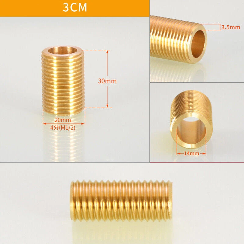 Product Information Product Name: 1/2” Full Male Pipe Fitting Material: Brass Size: 1/2” Length: 3cm 4cm 5cm 6cm 8cm 10cm 12cm Color: gold Origin: China Product Features. The product is made of high quality brass, strong and durable wear-resistant, anti-pressure and explosion-proof, long service life. High-quality thread, high sealing, anti-corrosion, safe and durable. Application scope Mainly used in piping systems, connecting pipes of different diameters in plumbing systems, as well as the transition of pipe diameters when conveying weakly corrosive liquids in industrial pipelines; also used in hydraulic and pneumatic systems, connecting different specifications of hydraulic oil pipes, air tubes and so on.