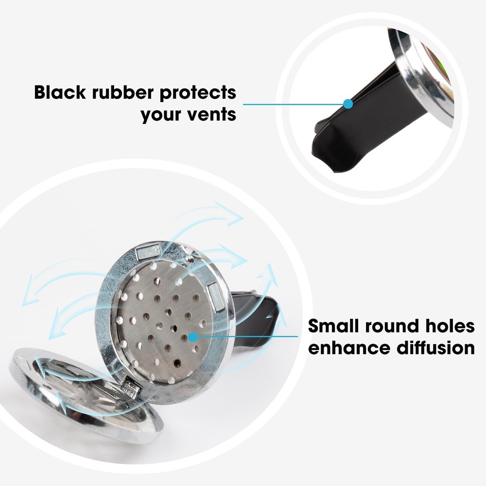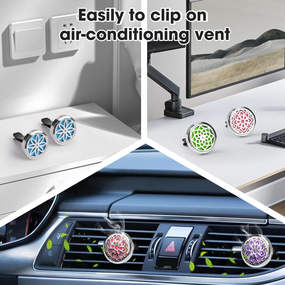 Car Diffuser Vent Clip - 30mm Aromatherapy Essential Oil Car Diffuser Vent Clips with 36 Refill Pads (3 Lotus Vent Clips, Metal) 【Natural Design】car diffuser vent clip, Adopt natural pattern hollow out design both beautiful and natural. Car air vent clip is a good choice for lovers of essential oils. 【High Quality Material】Essential oil car diffuser vent clip made of high quality alloy, lighter than other vent clips. Car vent air freshener clips work simple and portable. The aroma around you, makes your keep alert when drive, give you a relaxing journey, bring you good mood. (Requires essential oils) 【Multipurpose】You can place the mini aromatherapy car oil diffuser vent clip any where you like such as your car, office, bathroom, or even inside a wardrobe, and etc. Stay away from the unpleasant smell and create a charming atmosphere. (Essential oils not included) 【36 PCS Refill Pads】Come with 36 pcs washable and reusable refill pads with different colors, you can choose the color you like. Add suitable essential oils you like on the pads, then clip the car essential oil diffuser vent clip on your car, office, bedroom and anywhere you want. Then let your loved aroma around you anywhere and anytime. (Refill Pads are unscented) 【Perfect Gift Set】Come with 3pcs air freshener car vent clips + 36pcs refill pads (unscented) with 12 colors + 1 nice bag . It is easy carrying, fashion, convenient and simple, nice look. Car air fresheners vent clips are an excellent gift for your family members, relatives, friends, colleagues, partners, on Valentine's Day, Thanksgiving, Mother's Day, Christmas, birthday or any other anniversary. Mini aromatherapy essential oil car diffuser vent clip, come with 3 natural new design patterns, let you enjoy the aroma you like when driving journey. Product details: Color: sliver Locket size: 30mm in diameter(1.18 in) Locket weight: 0.7 oz for each Felt pad size: 22mm in diameter Package Included: 3 pcs car diffuser vent clip 36 refill pads (12 colors) 3 small blue yarn bags 1 black velvet bag Notes: No essentiIal oil include. How long will the smell last, it depends on how many essential oil drops you put on the felt pad and what kind of oils you use. Please make sure you choose 22mm refill pads for this car diffuser when you need pad replacements. Shipping We offer FREE shipping on all orders! We ship within Three business days of payment, usually sooner. We use a selection of shipping services such as UPS, FedEx, USPS etc. We only ship to the lower 48 states, no APO/FPO addresses or PO Boxes allowed. Local pickups and combined shipping options are not provided at this time. International buyers – please note: Import duties, taxes, and charges aren't included in the item price or postage cost. These charges are the buyer's responsibility. Please check with your country's customs office to determine what these additional costs will be prior to bidding or buying. Order Cancellation Policy * Order Cancellation Policy ** You can return a product for up to 30 days from the date you purchased it. 1. The seller reserves the right to cancel the special case only due to eBay cancellation fee. 2. The decision of seller is the final. 3. The seller will respond to the cancellation request within 2 business days. Please wait for the result of cancellation. 4. In case the cancellation is not completed by some reasons, the buyer can follow the options below to get the refund. 4.1 The buyer can reject the item when it arrives. 4.2 The buyer can send the item back to the seller within 30 days If the buyer receives item (USA Shipment ONLY). The seller will provide the FREE return label to the buyer when the buyer opens " Return Item" case on eBay by using the reason as "Change my mind" ONLY. 5. When buyer has placed the order. The order will be processed and completed by automatic warehouse system within 5 minutes. In case that buyer sends the cancellation request after 5 minutes of placing the order, the request will be rejected. **Sending direct message to cancel the order is not allowed for every case.* Return Policy - If buyer would like to return the items for refund or replacement, please CONTACT SELLER to receive the free return label from seller. The refund or replacement will be processed with the tracking number of return label which is provided by seller only. The other ways of return which are not approved by seller will not be processed for the refund or replacement. Return You can return a product for up to 30 days from the date you purchased it. Any product you return must be in the same condition you received it and in the original packaging. Please keep the receipt. Payment We accept payment by any of the following methods: eBay Payments Please pay as soon as possible after winning an auction, as that will allow us to post your item to you sooner! Feedback Customer satisfaction is very important to us. If you have any problem with your order, please contact us and we will do our best to make you satisfied. Contact Us If you have any queries, please contact us via ebay. We usually respond within 24 hours on weekdays. Please visit our eBay store to check out other items for sale! Thank you for shopping at our store.
