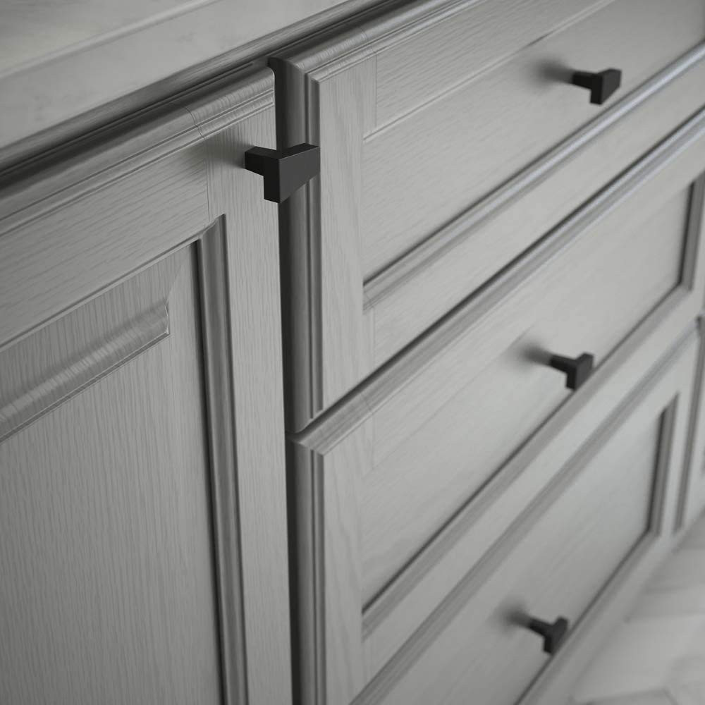 The Angled cabinet knob collection makes it easy to give an updated look to your kitchen, bathroom, office, or furniture. The Modern cabinet handle design makes it the perfect addition to your cabinets, desk, and even dresser drawers. Available in multiple finishes and pack sizes to fit any home decor project and cabinet hardware style. STYLE: Easily update your kitchen and bathroom cabinets or furniture with our modern cabinet hardware collection. MATERIAL: Our matte black finish provides a complimentary tone to the handles. SIZING: The collection of 1-3/16 in (30 mm) knobs comes in a pack of 10, so you can make your cabinet upgrades in bulk. DURABLE: We work with highly durable materials to ensure your cabinets and drawers are equipped with top quality hardware that will last for years. EASE OF USE: Our angled knobs are specially designed for easy installation and use.