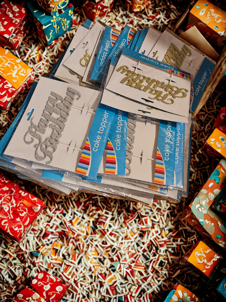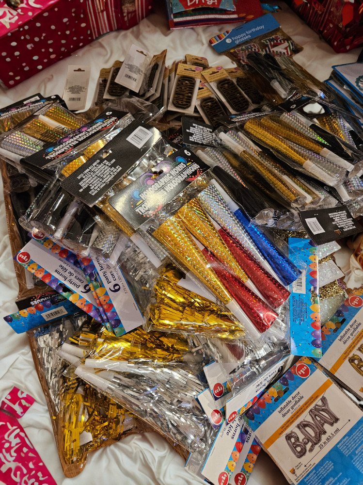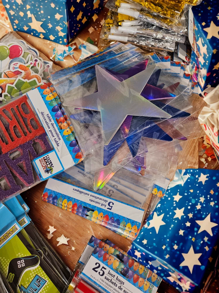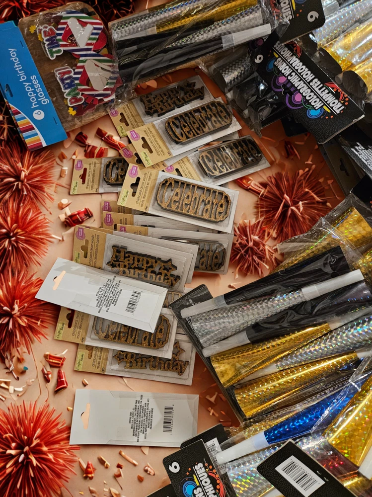 This comprehensive 30-piece birthday supply bundle offers a diverse selection of party essentials. While the specific items will be randomly chosen, the assortment is carefully curated to ensure a balanced and complete set for your celebration. Although it may not cater to every highly specific need, this bundle is designed to provide a cost-effective and time-saving solution for most party requirements. The bundle typically includes banners, candles, hats, horns, hanging decorations, chipboard signs, balloons, confetti, an inflatable birthday balloon, loot bags, small gift bags, medium gift bags, cake toppers, and large foil stars, and more! Ships within 1 business day. Powered by ExportYourStore.com