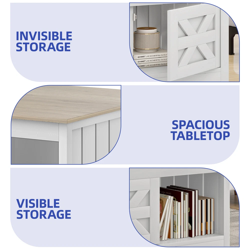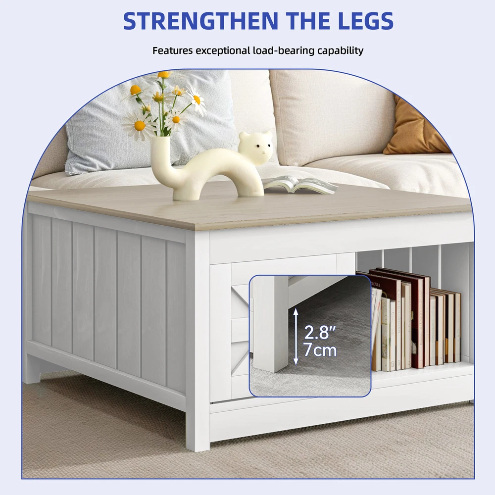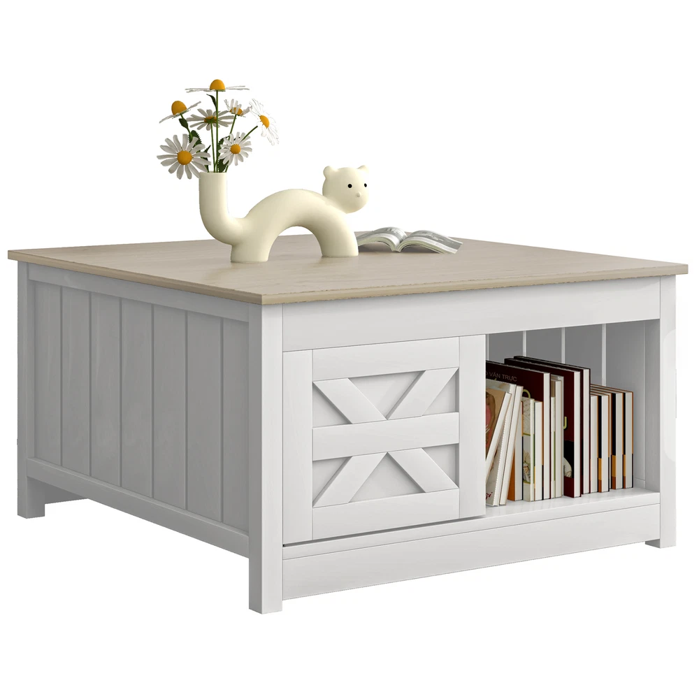 31" Farmhouse Square Wooden Coffee Table Barn Door Open Storage Home Living Room Product Description NOTE: Professional Installation would be Highly Recommended. Description: 1. Color: White + Walnut 2. Material: P2 Particle Board, PVC 3. Special Design: Coffee Table, Sliding Barn Door, Open & Hidden Storage, Tabletop, Workstation 4. Suitable for: Living Room, Home Office, Dining Room Features: 1. Rustic and Modern Appeal: Blending a charming white and walnut finish with a sleek, farmhouse-inspired design, this coffee table adds warmth and elegance to any living room, home office, or dining area. Its stylish sliding barn door enhances the rustic aesthetic while providing easy access to storage. 2. Smart Storage Solutions: Designed with both open and hidden compartments, this coffee table offers the perfect balance of display and organization. Store books, décor, or everyday essentials in the open shelves while keeping clutter tucked away behind the barn door. 3. Durable and Sturdy Build: Crafted from high-quality P2 particle board with a PVC finish, this coffee table ensures long-lasting durability. Its strong construction supports daily use, making it a reliable centerpiece for relaxing, entertaining, or working. 4. Spacious and Functional Tabletop: The smooth and wide tabletop provides ample space for drinks, snacks, laptops, or décor pieces. Whether used for casual gatherings, work-from-home setups, or everyday living, it offers a practical and stylish solution. 5. Versatile for Any Space: Perfect for living rooms, home offices, or dining areas, this multi-functional coffee table seamlessly adapts to different settings. Use it as a centerpiece for entertaining guests, a workstation for productivity, or a stylish storage solution for your space. Dimensions: 1. Overall Dimensions: 31.5"L x 31.5"W x 17.7"H 2. Product Weight: 59.08 lbs 3. Product Load Capacity: 110 lbs Package Included: 1. 1x Coffee Table 2. 1x Accessory Kit 3. 1x Instruction Manual Shipping 1. Normally the item will be dispatched within 1 business day if payment is cleared before 12pm PST. 2. Please verify the correct shipping address in your PayPal account before making the payment. We only dispatch the item to the address that is sent to us at the time of checkout. 3. We don't ship to Hawaii, Alaska, Puerto Rico, APO/FPO/PO Boxes. 4. We don't provide local pick-up service. 5. Normally we will use USPS, UPS, FedEx & LTL to dispatch items. Payment 1. We accept PayPal and credit card. 2. We will ship to the confirmed Paypal shipping address that is provided with the payment only. Return 1. 30 days Money Back Guarantee. 2. Please contact our customer service to receive a RMA form first if want to return the item. 3. All returned items MUST in new condition with the original package. Contact If has any problem, please contact us by sending an ebay message. Our customer service will resolve the problem as soon as possible. On Dec 1, 2024 at 18:55:05 PST, seller added the following information: On Feb 2, 2025 at 19:44:53 PST, seller added the following information: