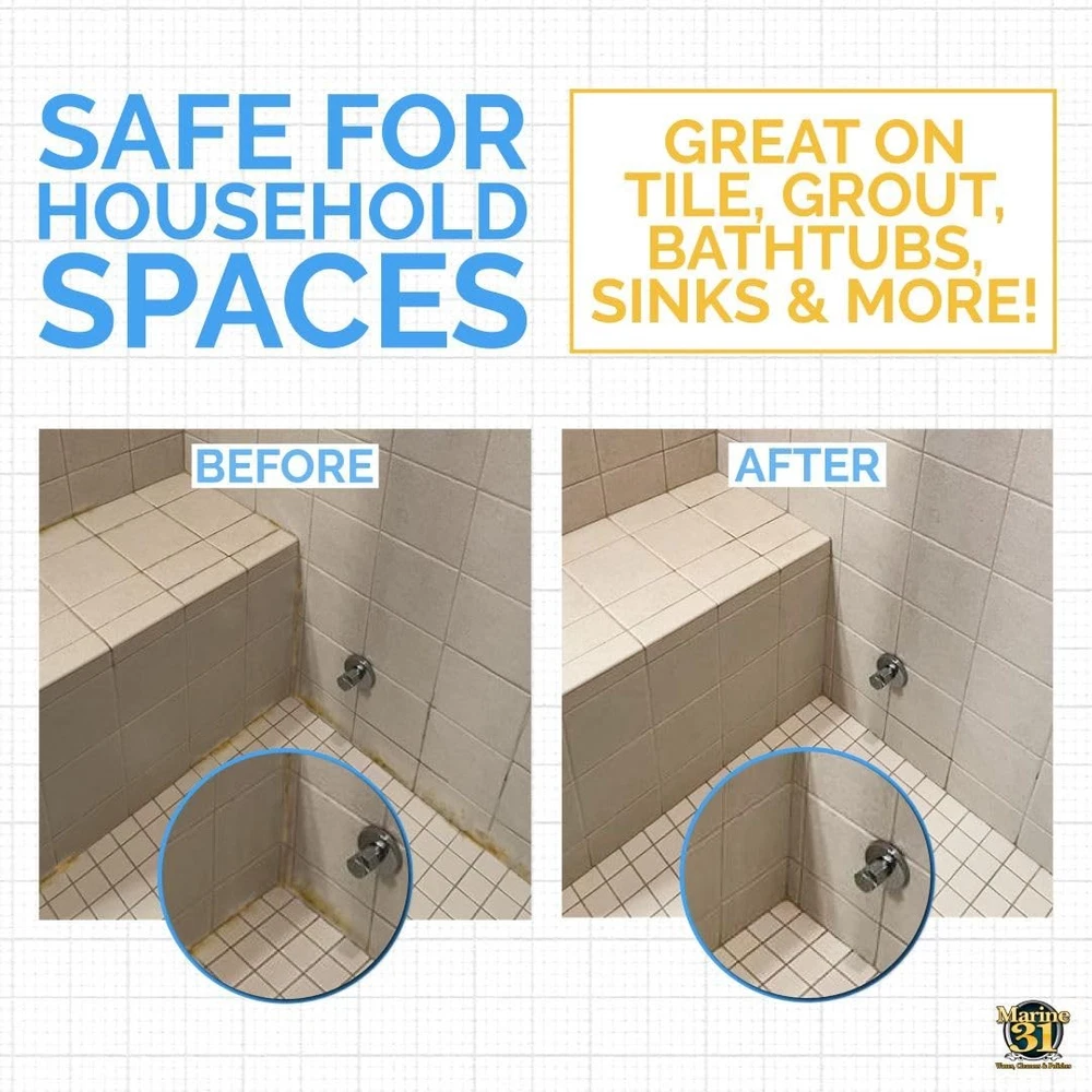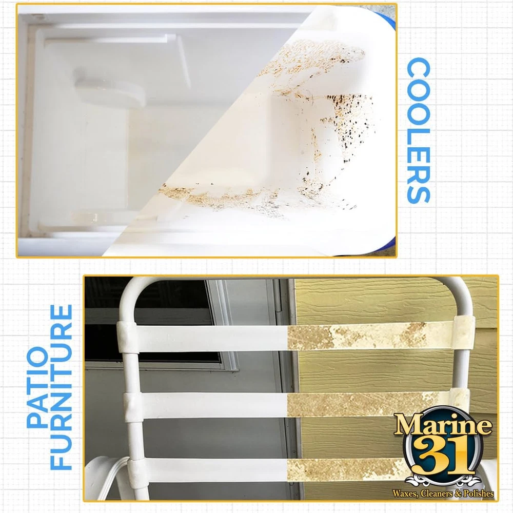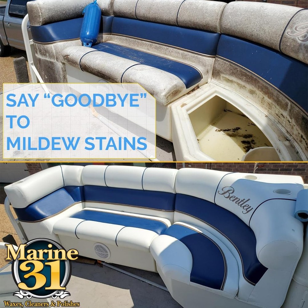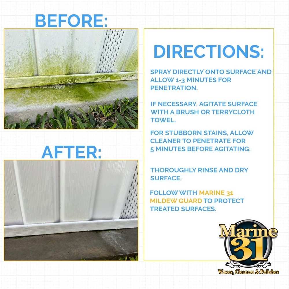 EASY TO USE: Simply spray the product directly onto the surface and allow to sit for 1 to 3 minutes. Agitate the surface with a brush or terry cloth towel, then thoroughly rinse and dry the surface. MULTIPLE USES: Safe for Boats, Home, Bathroom & Shower, Vinyl, Tile, Grout, Patio, Coolers, and just about anywhere else that may accumulate stains. 31 Mildew Stain Remover works like no other! SAFE: Erase unwanted stains without risk of discoloring, dulling or drying out vinyl seats. Even the most severe stains are no match for the cleaning power of 31 Mildew Stain Remover. FAST WORKING: 31 Mildew Stain Remover quickly erases stains from surfaces including vinyl, fiberglass, coat, canopies & more without the need of abrasive power washing and/or scrubbing.