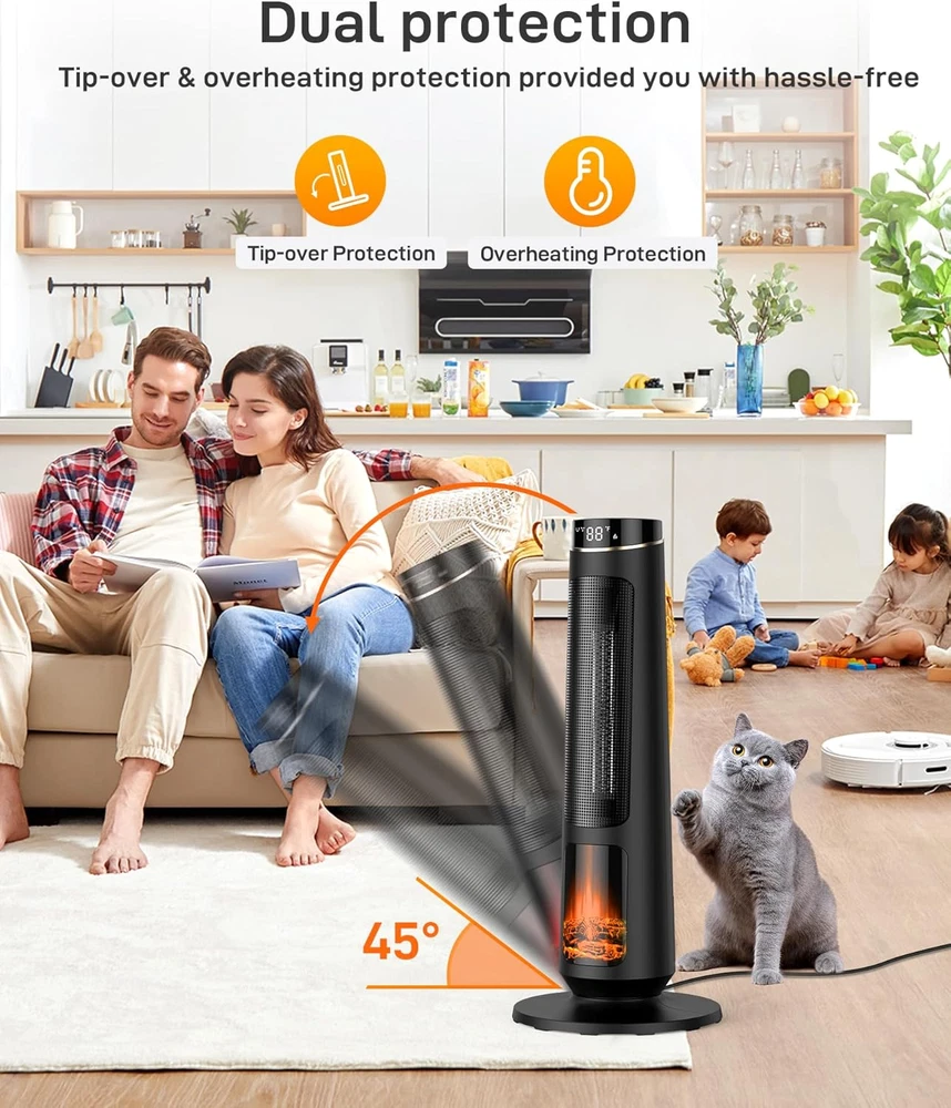 Store New Arrivals Add to Favorite View Feedback Contact 31" Space Heaters for Indoor Use, Ceramic Tower Space Heater for Room Heating, Timer and Remote Control, 1500W Fast Heating, 3D Realistic Flame, Digital Display, Overheat Protection Description Item model number SF709A Room Type Bedroom, Home Office, Study Room Indoor/Outdoor Usage Indoor Mounting Type Floor Mount Color Round Country of Origin China Power Source ac Heating Method Convection Item Weight 8.8 pounds Batteries required No Fuel Type Electric Burner type Radiant Recommended Uses For Product Office, Tent, Garage, Greenhouse, Home Item Weight 88 Pounds Heat Output 1500 Watts Form Factor Tower Included Components remote control, base Special Feature Digital Display, On Off Timer, Adjustable Temperature, Fast Heating, Remote Control Product Dimensions 10.23"D x 9.44"W x 31.49"H Assembly required Yes Number of pieces 1 ๐ฅใ๐๐๐ฃ๐ฎ๐ฌ๐ญ๐๐๐ฅ๐ ๐๐ก๐๐ซ๐ฆ๐จ๐ฌ๐ญ๐๐ญใ๐ฅTower heater have Choose from 3 modes: high heat (1500W), low heat (1000W), and fan-only, offering versatile heating options. ECO mode circulates hot or cool air, adjusting automatically. A 50-95โ adjustable thermostat saves energy and maintains your comfort. Heater tower for indoor use Ideal for bedrooms, home offices, kitchens, and more. ๐ฅใ๐๐ง๐ง๐จ๐ฏ๐๐ญ๐ข๐ฏ๐ ๐๐ ๐ ๐ฅ๐๐ฆ๐ ๐๐๐๐๐๐ญใ๐ฅExperience innovation with our space heater's mesmerizing 3D flame effect. tower heater sets the scene for tranquil winter nights, ensuring your children's peaceful sleep. The 3D flame functions as a night light, casting a gentle, sleep-inducing glow. Control the 3D flame via the touch panel or remote control. The LED display shows ambient temperature. ๐ฅใ๐๐๐๐จ๐ซ๐ญ๐ฅ๐๐ฌ๐ฌ ๐๐จ๐ซ๐ญ๐๐๐ข๐ฅ๐ข๐ญ๐ฒใ๐ฅDesigned with a top-mounted handle, our tower space heaters for indoor use is incredibly easy to move. Transition from the living room to the bedroom, kitchen, garage, or any other space with utmost convenience. ๐ฅใ๐๐จ๐ซ๐ ๐๐๐ง๐๐ ๐๐ฆ๐๐ง๐ญ ๐๐๐๐ ๐๐๐ฌ๐ฒใ๐ฅThe tower heater for large room features a clever design with a designated space at the back for storing the power cord. No more worries about cord organization when not in use โ simply wrap it around the back of the heater for convenient and tidy storage. ๐ฅใ๐๐จ๐ง๐ฏ๐๐ง๐ข๐๐ง๐ญ ๐๐๐ฆ๐จ๐ญ๐ ๐๐จ๐ง๐ญ๐ซ๐จ๐ฅใ๐ฅEnjoy seamless control of our Space Heater for Indoor Use with the included remote. Effortlessly manage power, modes, oscillation, temperature, timer, and 3D flame activation from the comfort of your couch. The LED display showcases ambient temperature for added convenience. ๐ฅใ๐๐ง๐ฌ๐ญ๐๐ง๐ญ ๐๐๐ซ๐ฆ๐ญ๐ก & ๐๐ข๐๐ ๐๐จ๐ฏ๐๐ซ๐๐ ๐ใ๐ฅExperience rapid, 1-second heating with our potent large room heater. The 90ยฐ oscillation ensures even heat distribution, warming every corner of your room. Ideal for large spaces, tower space heater energy-efficient, reducing electricity costs while keeping you cozy. ๐ฅใ๐๐๐๐๐ญ๐ฒ ๐ ๐ข๐ซ๐ฌ๐ญใ๐ฅOur heater tower for indoor use provide peace of mind around children or pets. The built-in tip-over button shuts off the heater if it tilts over 45ยฐ or leaves the ground, perfect for homes with kids or pets. Its cool-touch exterior remains safe to handle, even after hours of operation. Reliable protection for households with children or pets. ๐ฅใ๐๐-๐๐จ๐ฎ๐ซ ๐๐ข๐ฆ๐๐ซใ๐ฅOur programmable room heater includes a 12-hour timer, ensuring a peaceful night's sleep. Set the timer for 1 to 12 hours in 1-hour intervals. Enjoy comfort in your bedroom or office year-round. with questions; we respond within 12 hours! Product Description ABOUT US We offer the best prices around on high quality products. Our E-store includes media such as books, movies, music and games while offering electronics, toys, sporting apparel, clothing, tools, general home, garden items and more. SHIPPING We are always working hard to ensure your package arrives as soon as possible. Please understand that some factors like weather, high postal traffic, and the performance of shipping companies are outside of our control. We offer free shipping to the lower 48 states and ship within 2 business days of payment, usually sooner. We do not accept P.O. Boxes. Please provide a physical address. For shipping outside of the continental USA, we only use eBay's Global Shipping Program.The item is shipped to KY and then sent to the rest of the world. International customers are responsible for all duties and taxes. Continue to check out in order to calculate costs for shipping the item to your country. Messages regarding eBay's Global Shipping Program MUST be directed at eBay EXCLUSIVELY. RETURNS We offer a 30-Day Return Policy on items which you are not completely satisfied with. You have the option for a full-refund or an exchange of the item. No returns are available on items shipped outside of the USA. PAYMENT We accept PayPal. CONTACT US This page content is yet to come Please ad us to your favorite seller and visit again later Thank You CUSTOMER SATISFACTION We try our very best to make sure every customer is completely satisfied. If there's a problem, message us! We're happy to help. WE ACCEPT Copyright ยฉ 2021 AutoDS. | All Rights Reserved