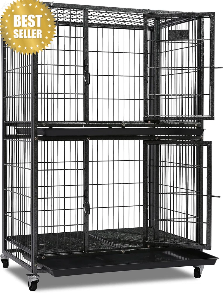 $ 153.1242 inch XL Folding Metal Dog Crate Cage Pet Kennel for Large Dogs With Divider